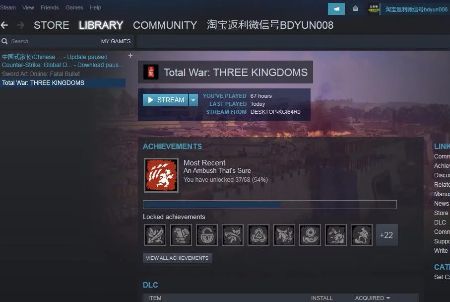 steam游戏 全面战争三国 租号联机日租体验试玩
