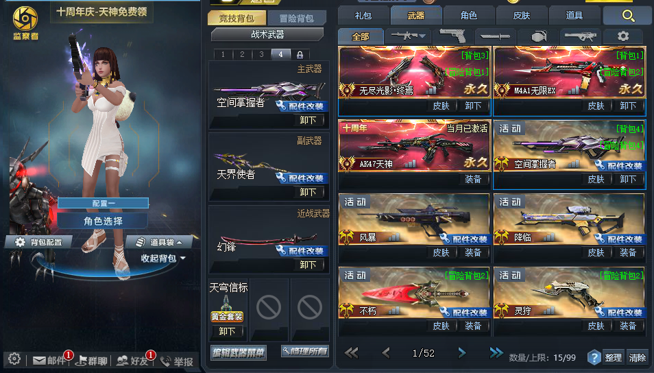 其它武器:【满配翎羽】【数据魔方贰】【满配原石之怒】【满配含光承影】【满配镭射】【满配戏法幻刃】【满配幻锋】【满配瞬影】【满配镭射】【满配无限火力】【满配獠牙】【12配猎杀】【影落】【13配糖果工厂】【末日审判贰】【金属风暴贰【满配狂暴之握】