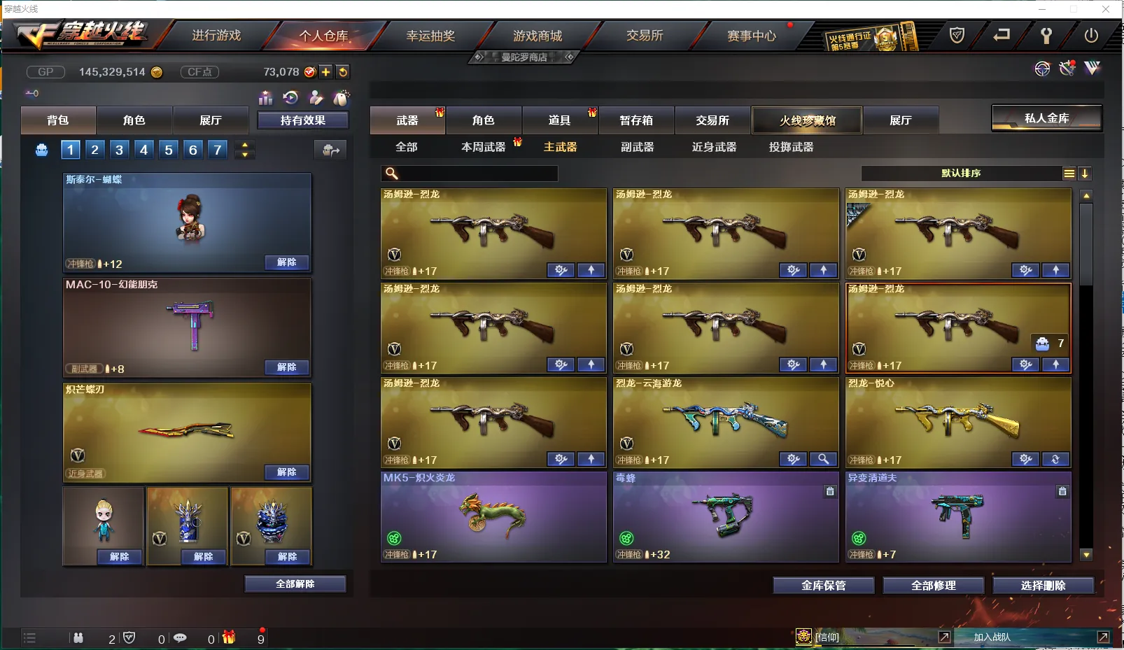 【生化】:八面凌龙(满级!最强生化神枪)、九霄圣角、幻神(打生化的神狙)、炽芒蝶刃(蝴蝶刀,生化加速神刀,最帅的耍酷刀)、斯泰尔-蝴蝶🦋、斯泰尔-幻面灵狐、毒蜂、异变清道夫、双面神、KAC-狂怒咆哮、死亡之眼、M14EBR-玄武、轻型军用手斧-镜、MK5-炽火炎龙、