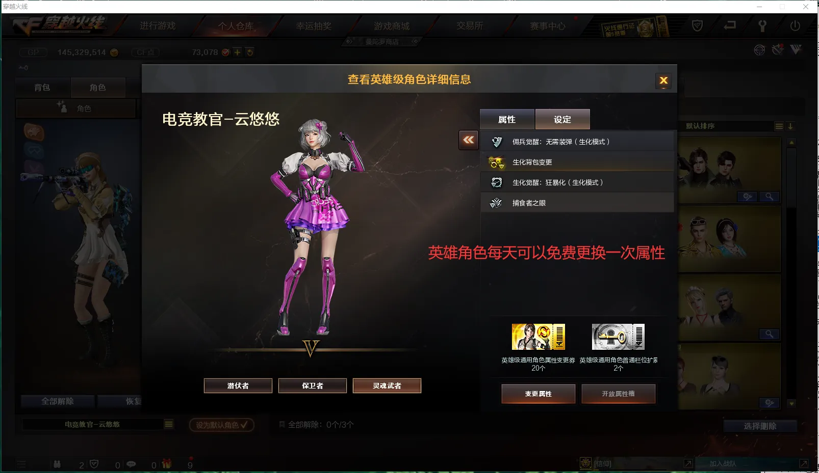 电竞教官-云悠悠(佣兵觉醒:无需装弹、生化觉醒:狂暴化、捕食者之眼、生化背包变更)