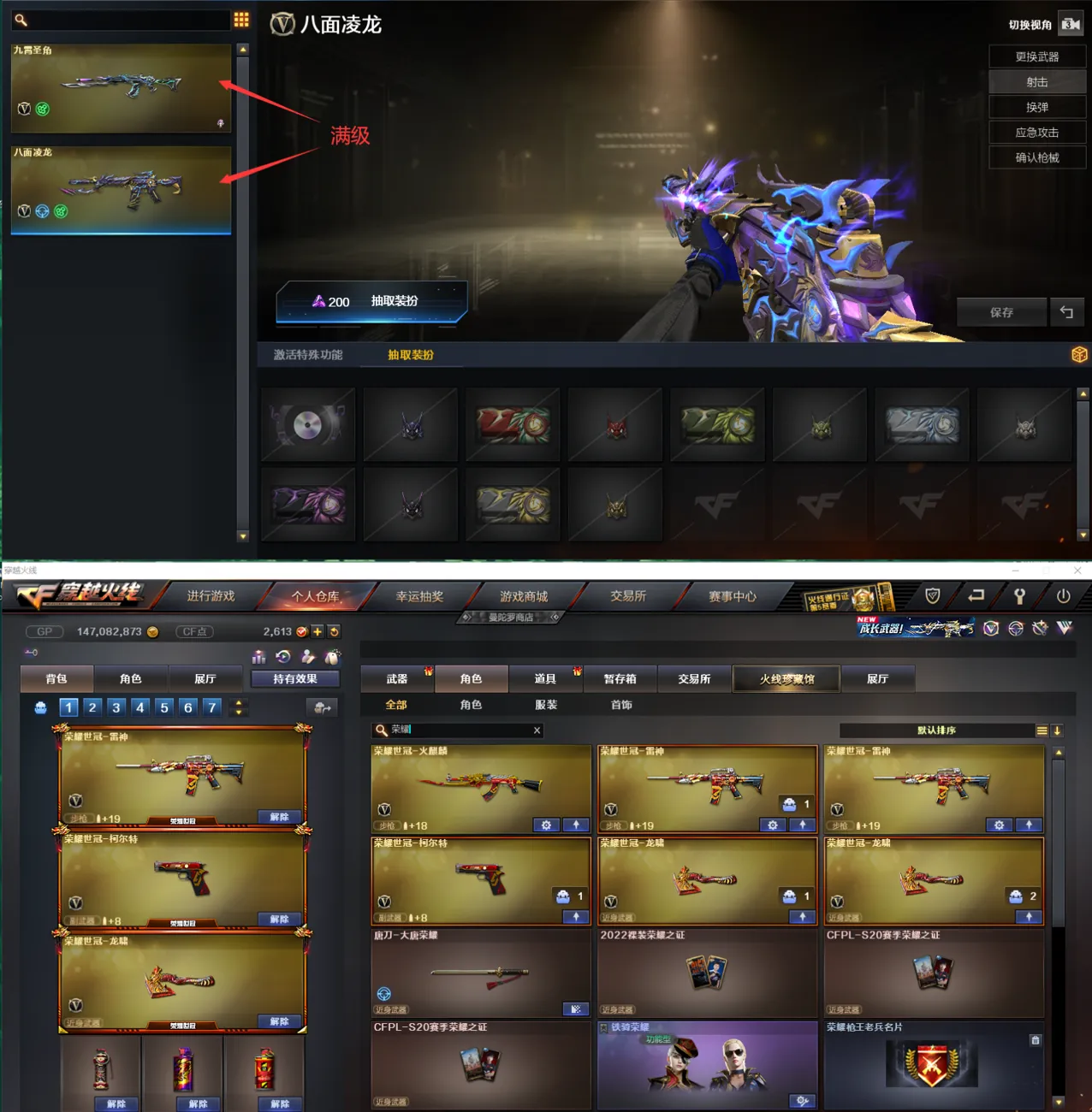 (星神-AG-CFPLS21冠军皮肤、毁灭-AG-CFPLS15冠军、修罗-冠军之魂、火麒麟-AG战队皮肤)