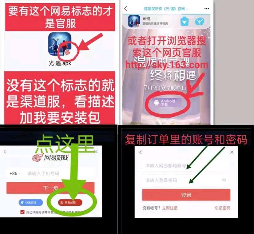 安卓官服!!光遇官服!! 仅官服可登陆! 不存在密码错误 登不上属于登错服 恶意投诉一律永久拉黑