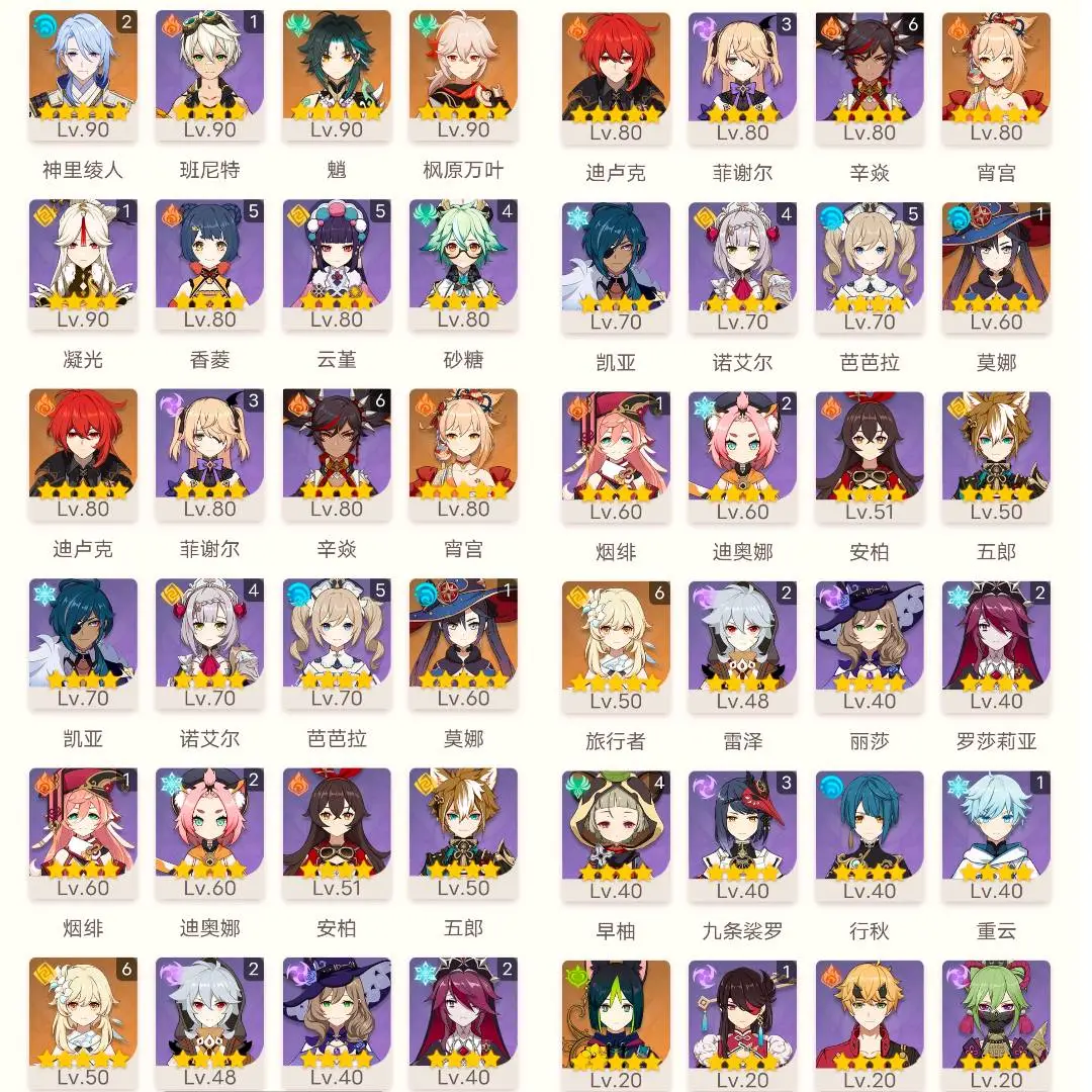 【全平台】 12黄 两命90神里绫人90万叶90魈一命90班尼特提纳里一命90疑光5命云董宵宫1命莫娜等