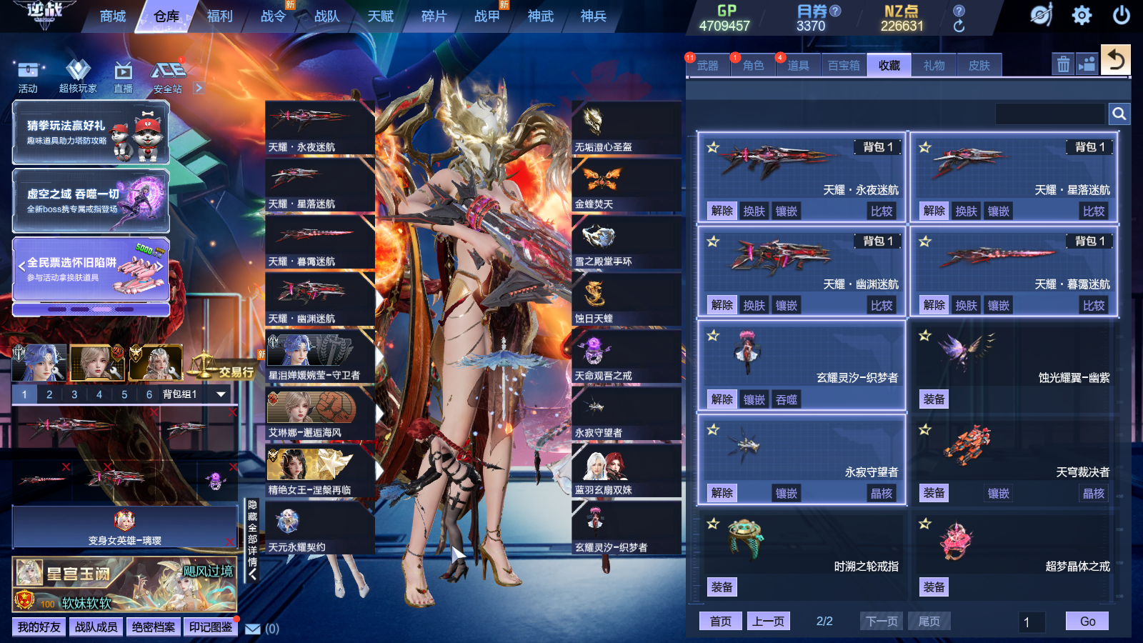 深渊武器30级、神武宝库绀蓝套、奥特曼五件套、塔防陷阱全能卡有很多天、百宝箱三级、泽塔装甲、裁决女帝-龙姬、