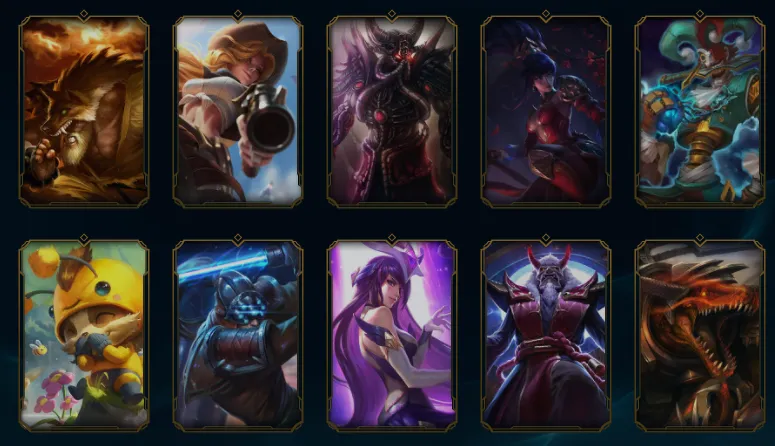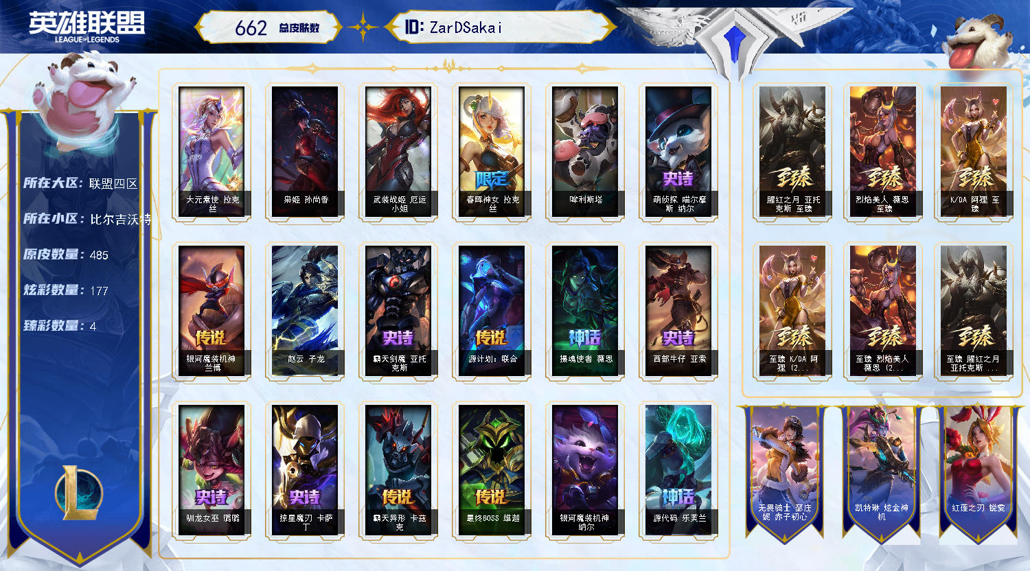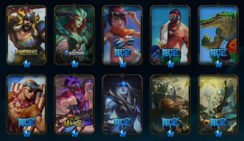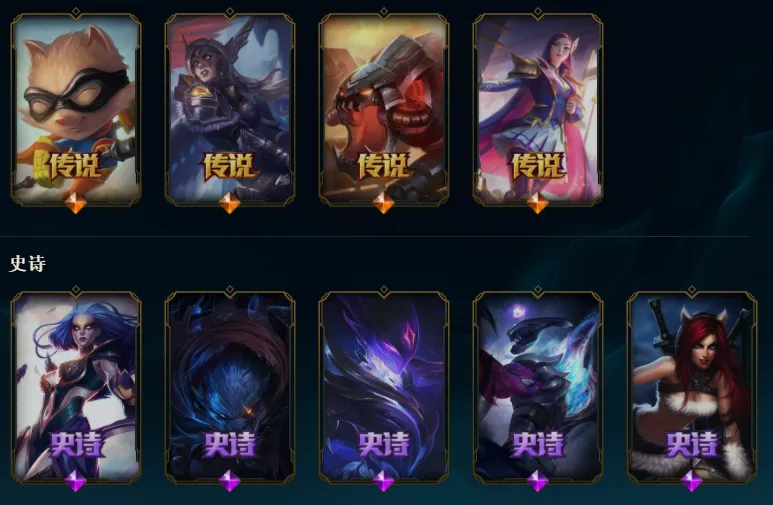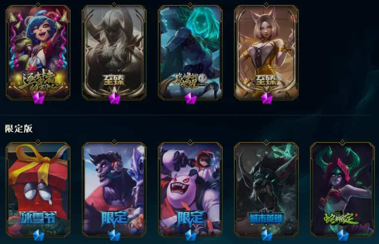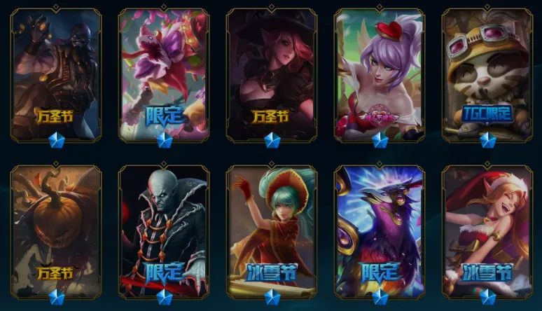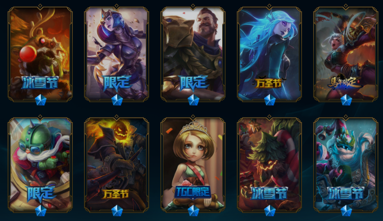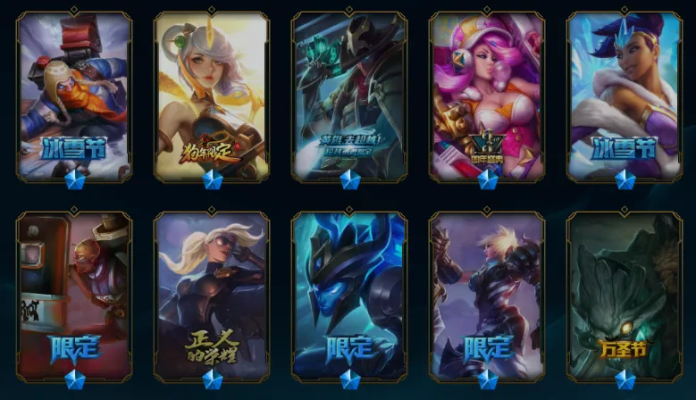【400原皮肤】战斗学院女警、玉净夜叉、庆典女皇、大元素使、情人节奎因、死亡誓约卡特、御星魔矢、黎明锐雯、神拳、至臻阿狸、至臻薇恩、至臻剑魔、海克斯VN、摄魂薇恩、海克斯卡萨丁、海克斯皇子、蛇年蛇女、狗年光辉、电玩女枪、周年女枪、花木兰、猴年女警、庆典女皇、大元素使、武装战姬、地底世界、冰雪节卡尔玛、惊悚派对稻草人、万圣节莫甘娜、觅心之翼、万圣节卡特、万圣节人马、舞会公主、MSI妖姬、泳池剑姬、御星魔矢、FNATIC皇子、暗星锤石、黎明锐雯、神拳、屠龙勇士潘森、星之守护者金克丝、源计划VN、吕布、喵凯、魔女卡蜜尔、未来战士女警、孙尚香、小蜜蜂提莫、星之守护者辛德拉、玉剑传说剑圣、玉剑传说风女、赵云、地下都市梦魇萨科、地下都市小丑
