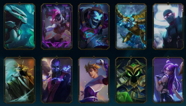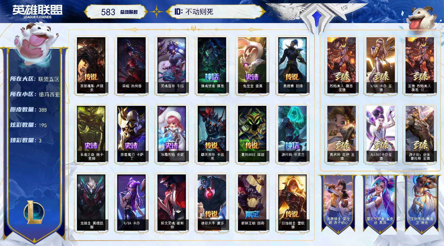 【313原皮肤】水晶掠夺者卡兹克、至臻塞拉斯、至臻凯隐、新至臻卡莎。旧至臻卡莎、至臻薇恩、至臻佐伊、海克斯VN、摄魂薇恩、海克斯人马、神凰行者霞、周年霞、虎痴之拳、猴年猴子、美猴王、猴年女警、玉净夜叉、猴年莫甘娜、斩星魔剑、暗星尊烬、克烈古拉伯爵、黎明使者豹女、灵魂莲华莉莉娅、灵能特工莎弥拉、电玩人马、冰雪节发条、冰雪节卡尔玛、冠军之血、觅心萝莉金克丝、情人节金克丝、魄罗骑士猪妹、甜心宝贝安妮、情人节安妮、甜心之羽霞、情人节霞、卧虎藏龙、舞会公主安妮、勇者豹女、SSG皇子、SSGEZ、SSG霞、奥德赛凯隐、日蚀骑士日女、神拳、西部魔影卢锡安、西部天使艾希、西部寒冰、星之守护者霞、奥德赛炸弹人、黑夜使者厄斐琉斯、千纸凤凰、千纸双子、未来战士卡牌、西部魔影锤石、孙尚香、星守女枪、源计划金克丝、K/DA卡莎