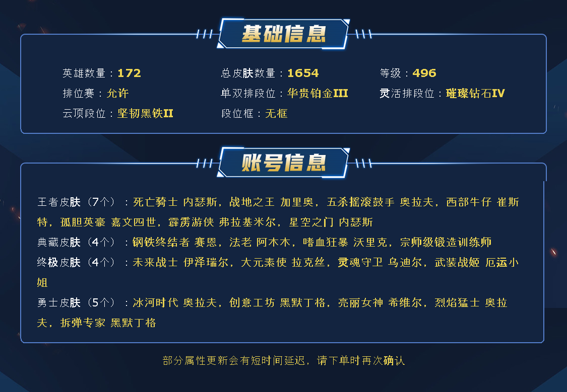 ~~喜欢记得收藏~~可排位~~1591皮全英雄丨70神话/至臻/海克斯丨龙瞎/龙的传人丨IG套丨灵魂莲华套丨鼠年套丨电玩套丨FPX套丨KDA套丨情人节套丨创星御星丨玉剑男女刀丨泳池女警佐伊丨嫦娥羊丝花木兰丨星守佐伊狐狸风女ez~~租之前尽量查一下游戏ID,确保段位是您需要的,避免浪费您的时间~~请勿挂机逃跑故意送人头,谢谢合作,谢谢~~