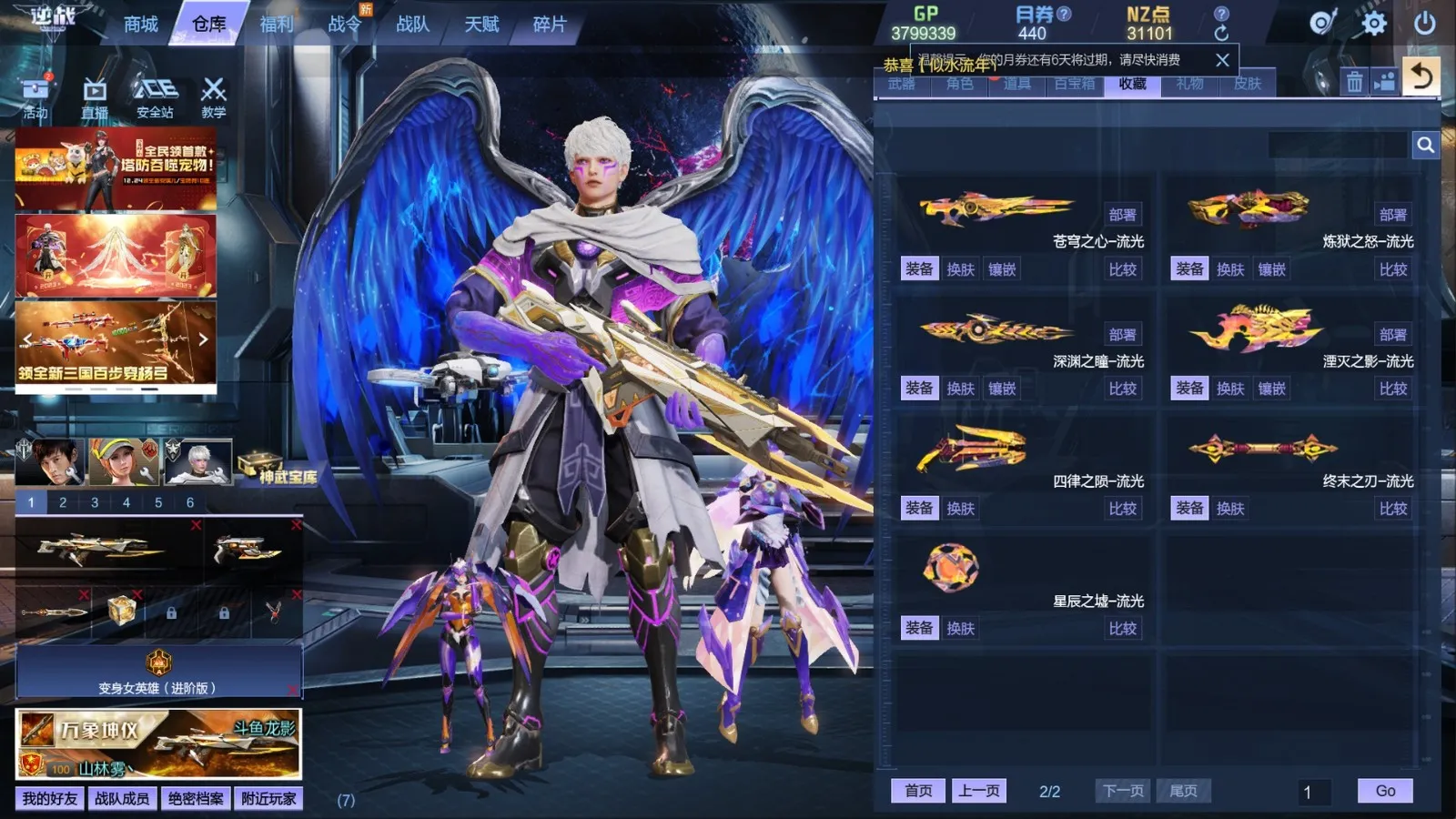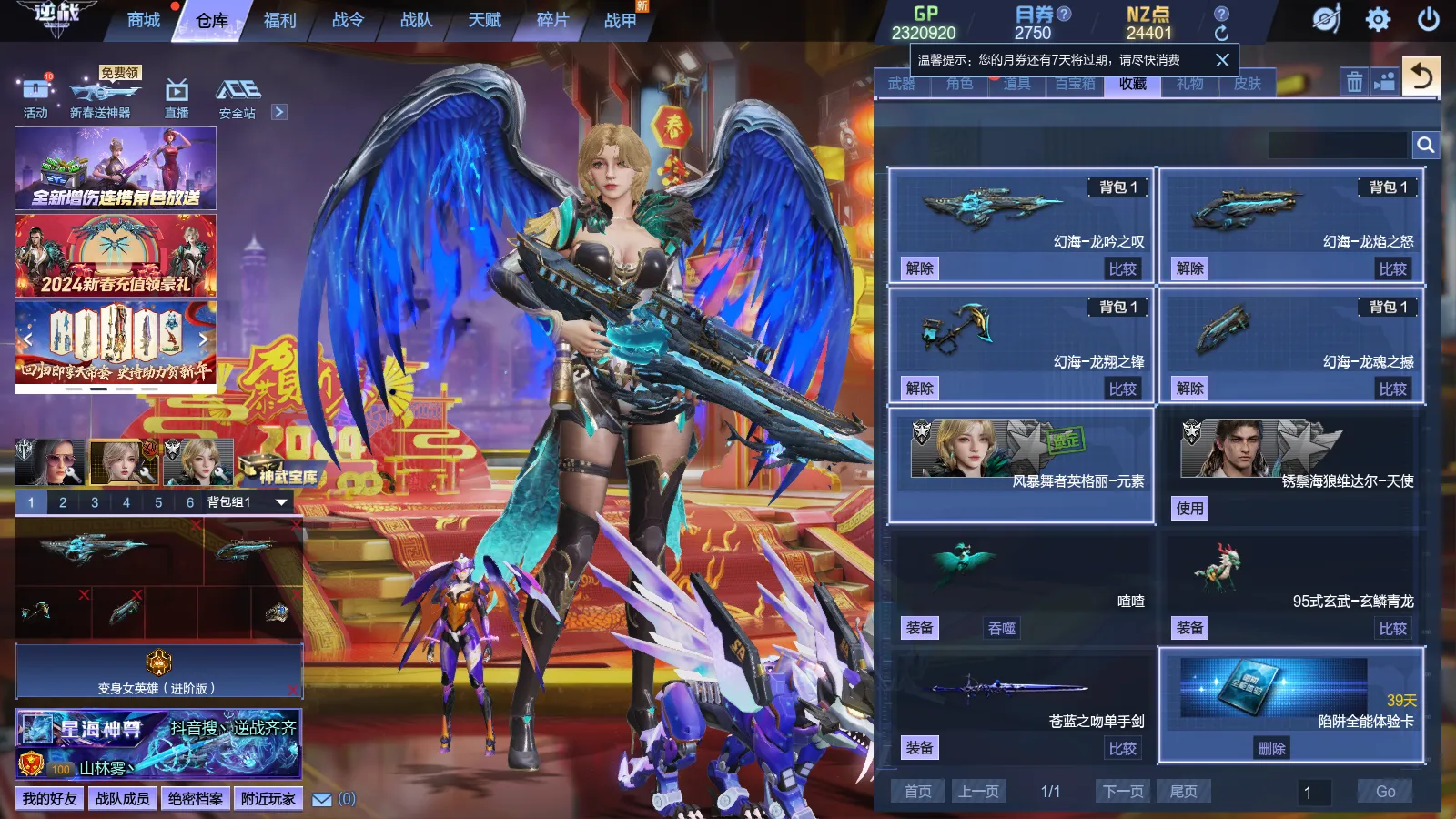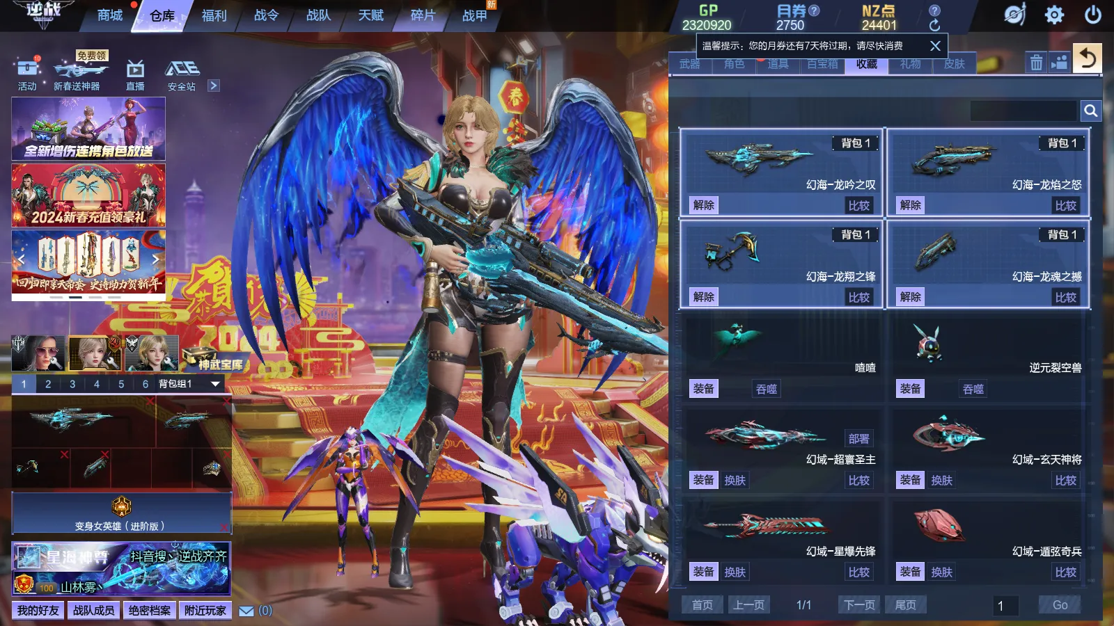 主武器:【双持UZI-泳池派对,变色龙,血魂M4,哮天犬-AK,哮天犬-狙月,诸神黄昏-末世重生,逆联赛MSR,M107-弹无虚发,钻石AK47,M107-灵魂烈焰,M107-电玩,M107-鲲鹏,镶金红玉-AK47,长风狙击-炽热牡丹,天启-深渊之瞳,长风狙击-蔷薇涟漪,天启-湮灭之影,天启-炼狱之怒,天启-苍穹之心,闪电风暴-电光,闪电风暴-雷鸣,闪电风暴,陨星-引力深渊,陨星-星门之隙,天极-永夜之主-大神,陨星-猎户座悲吟,陨星-银河之骸,天极-永夜之主,陨星-阿斯加德怒火,天极-转乾坤,天鲲激光炮,学神步枪SCAR,鬼炎M4,50式冲锋枪,巴雷特-炎狱龙魂,81-1式,M4A1-M,巴雷特-鹊桥仙,巴雷特M95-射手座,巴雷特M95-小丑狂欢,M4A1-冥王,幻域-超寰圣主,M4A1-春神句芒,88式(纪念版),M4A1-绝影,魂灵役主,95式-暗金鼠灵,95式-灵魂烈焰,M4A1-雪域迷踪,黄金AK47,95式-阿弗洛狄忒,95式步枪-阡陌暖春,M4A1-黑金,黄金Z型步枪,心灵特工-阡陌暖春,心灵特工,黑龙霰弹枪,战地KACSAW,MKV200掌上枪,MP5SD10,AK-龙皇,掌上枪-混沌缇娜,MSR-丘比特,MSR-刑天,MSR-大圣,MSR-电离对撞,MSR-蔷薇,MSR-龙皇,AK47-寻龙,AK47-山水画意,极夜星魂-凛冽冰蓝,OTs-14,AK47-虹能超导,P90-龙纹魔石,AK47-逐月,AK47-阡陌暖春,极寒冰神-纸鸢,AK47【逆战版】-堕天使,极寒冰神,RPK-S,RPK-百鸟朝凤,AK74-鹊桥爱恋,Scar-9周年,SCAR-夏日焰火,泰坦双星,SCAR-天王,浴火战神,SCAR-星尘,海王M4-源代码,深渊之瞳-流光,Scar-桃园溪涧,SCAR-火凤,湮灭之影-流光,Scar-赛博霓虹,火神炎帝,灭烬之嗣,AN94-八周年,AN94-地狱烈焰,AN94-蛟龙游,Scar天王-金鳞化龙,AN94-青鸾,Scar天王-骑士精神,炼狱之怒-流光,炼狱双蝎,SCAR巨齿鲨,烈焰战神,AR15-冰雪节限定,Scar朱雀-原神之怒,AR15-方天画戟,AR15-武神,AR15-清爽夏日,AR15-纳福,电磁加农炮-宙斯,神凰-昭灵威仪,T2MK5,TMP,Ultimax100,UMP45-炽热牡丹,AWM-亘古永恒,Z型步枪,离震双法战术终端,AWM-地狱火,AWM-狰,刺刀AK47-十周年,FAMAS-R,加特林-狂蟒,加特林机枪,苍穹之心-流光】