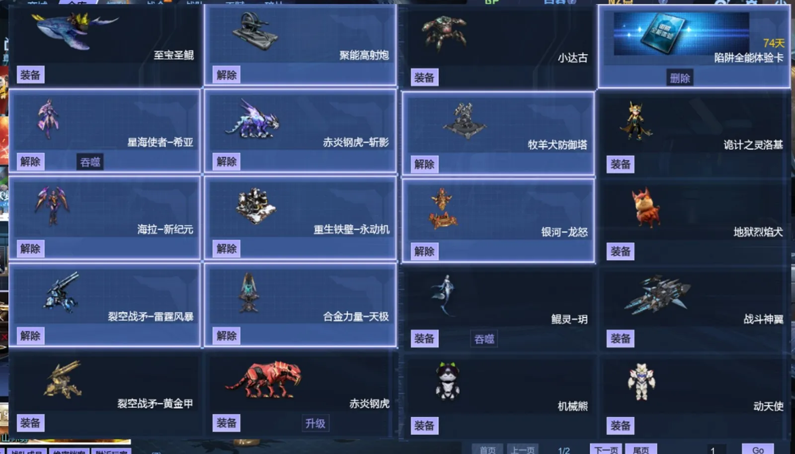 道具:【4号背包,5号背包,伞姬变身卡,减速陷阱-沼气池,减速陷阱-虚空,哈乃次郎,聚能高射炮,A型超级机甲执照,智械帝国-机械鲲,天启,天网,小幽魂露卡,小达古-新春福到,广寒玉兔,扇姬变身卡,手雷包,投射枪-星尘,星云战车,星海使者-希亚,死亡骑士卡,歼灭者-虚空,毒液箭头,浮游雷-玩具城,深渊凝视者-MK3,深渊凝视者,湮灭处刑者-凛冬,湮灭处刑者,炼狱征服者-凛冬,炼狱征服者,燃烧箭头,爆炸箭头,牧羊犬防御塔,破坏者-虚空,磁暴矩阵,自修复-圣甲,自修复磁暴塔,苍穹守卫者-MK3,苍穹守卫者,裂空战矛-黄金甲,装置枪-过载,贯穿箭头,赤炎钢虎,躲猫猫专家卡,闯关百宝箱,防弹背心】