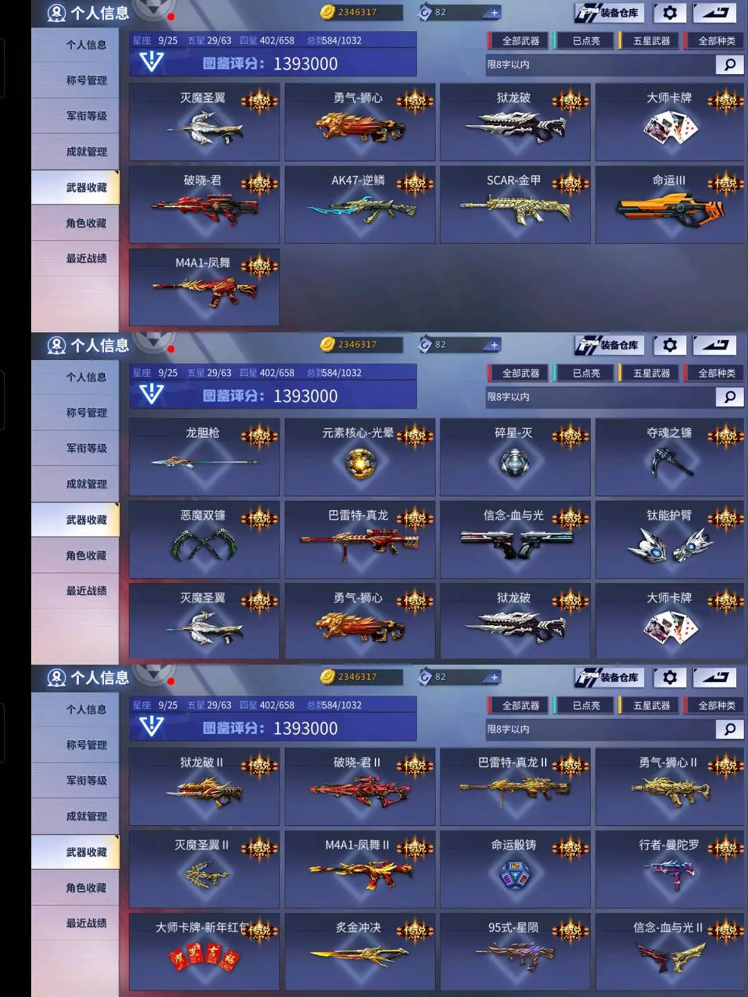 ★【五星:曼陀罗/星陨/大师卡牌/真龙/逆鳞/金甲/破晓/狮心/炙金/命运Ⅲ/龙胆枪/夺魂之镰/恶魔双镰/血与光/钛能护臂/碎星】