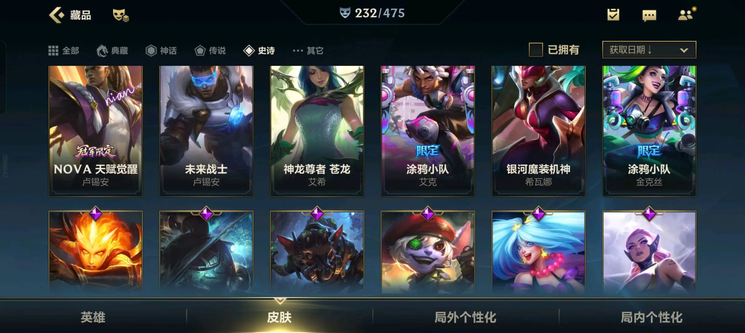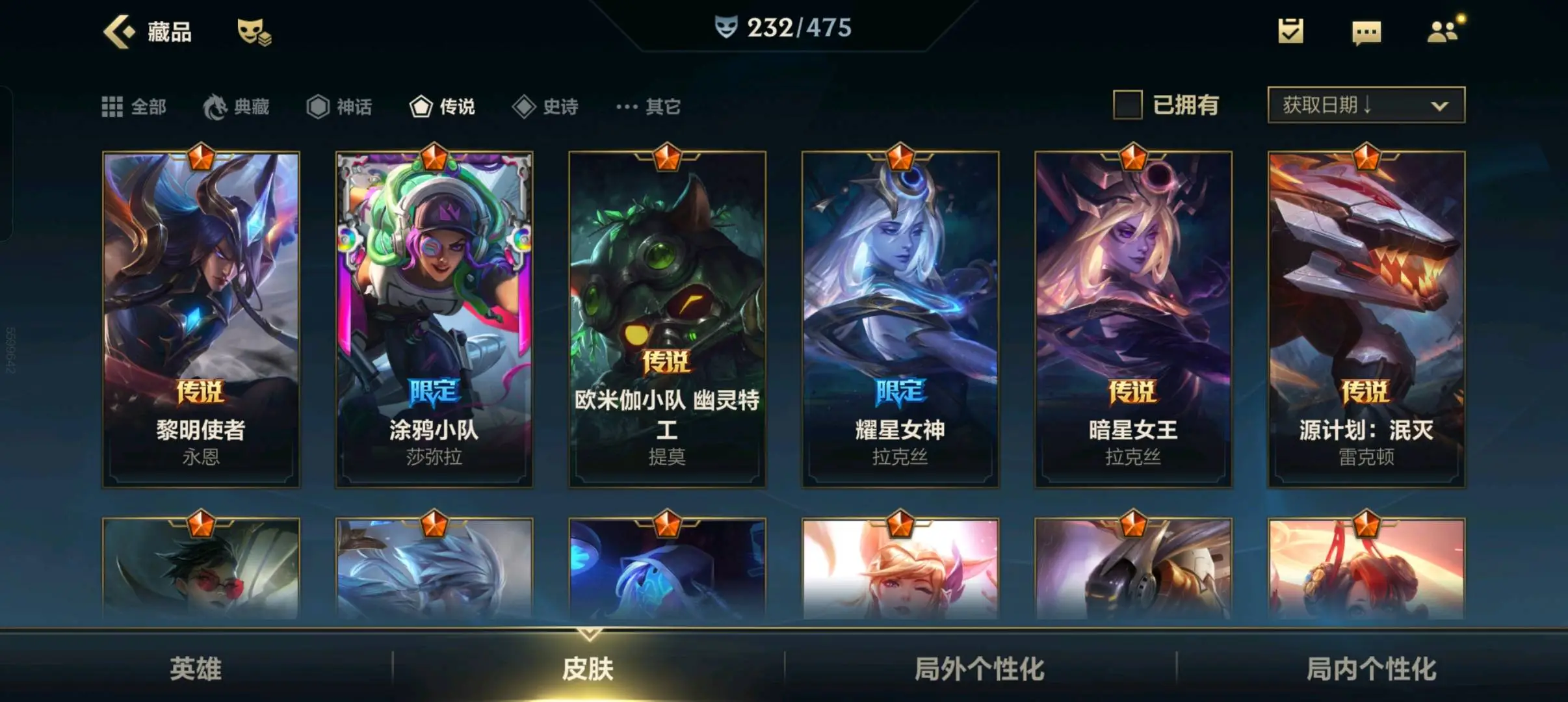 【安卓】 忧人77/全网神豪2神话27传说232皮!龙吟九霄+幻影!涂鸦全套兔年全套黎明全套暗星套!超质量!