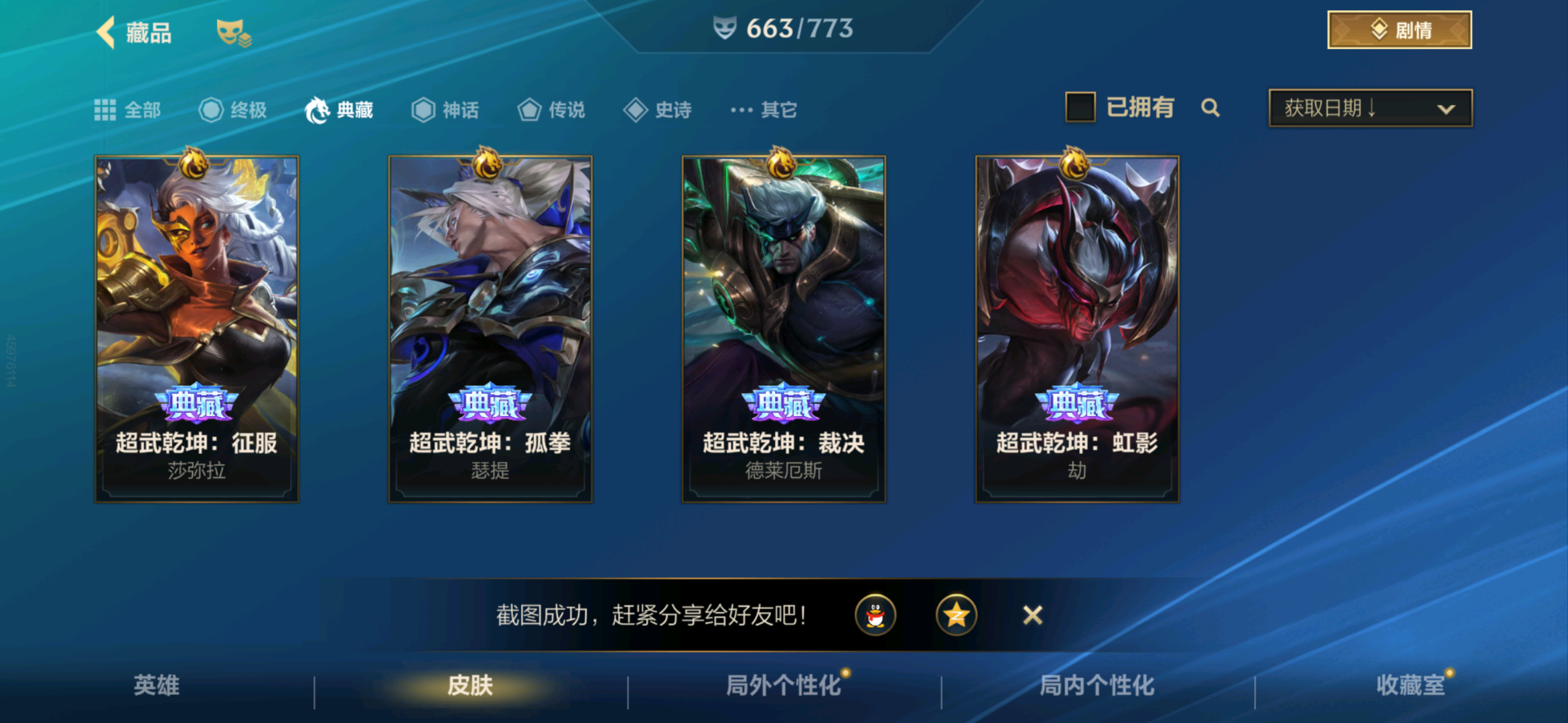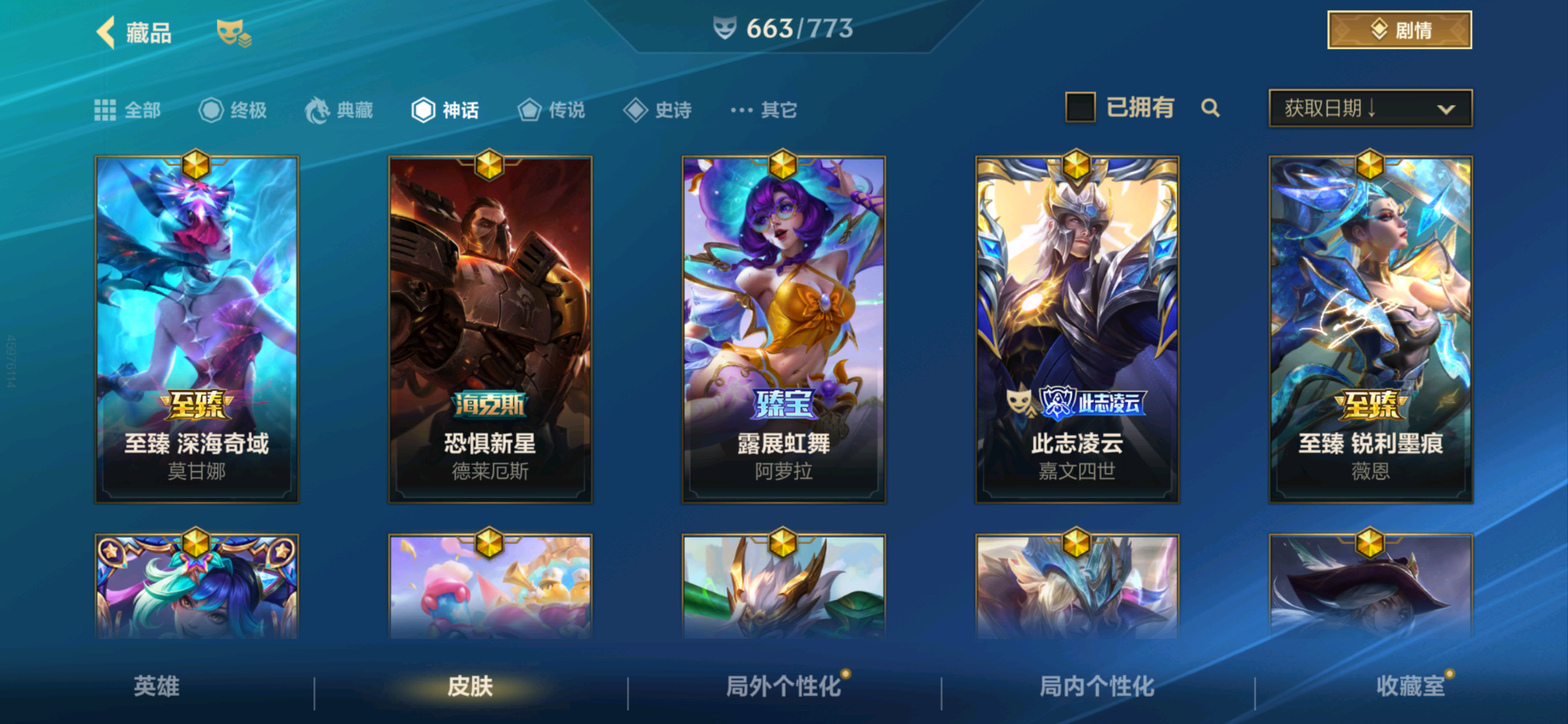 一共640皮肤,信誉分拉满,按键皮肤等等,不要中途退游戏哦~