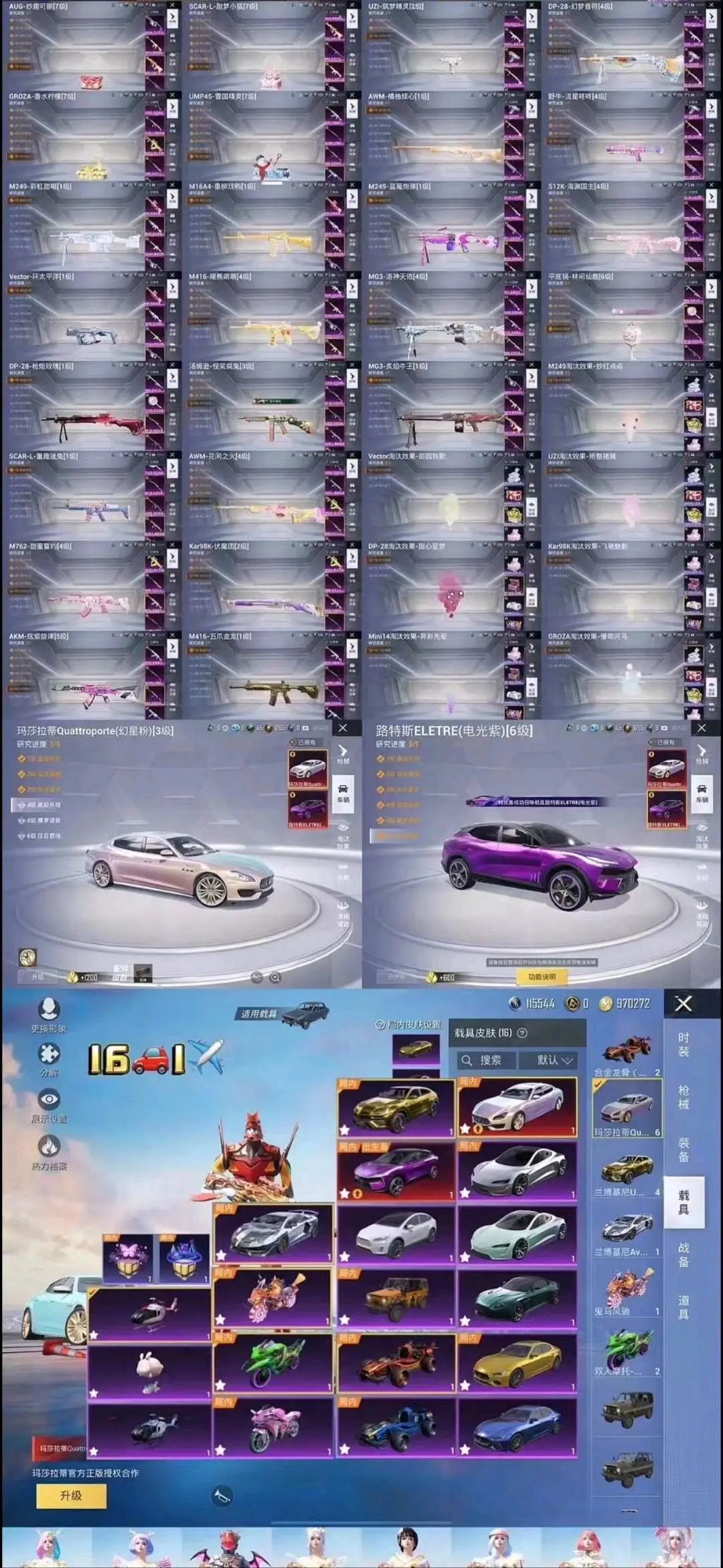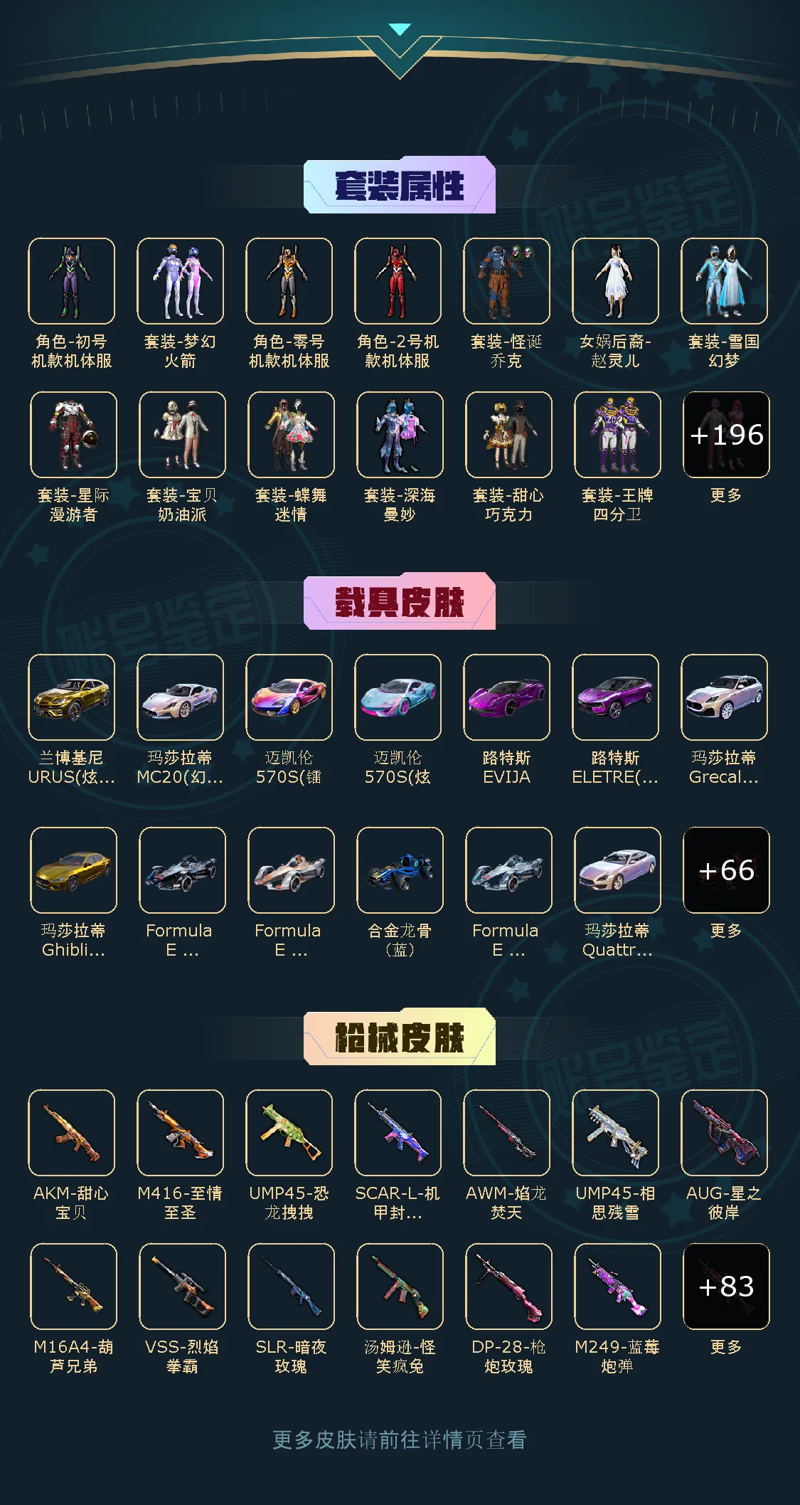 72粉,16载具,28特效枪 357套装 UZI-绮梦青鸾/AKM-甜心宝贝/DP-28-扶摇飞仙/SCAR-L-梦幻火箭/SCAR-L-童趣迷兔/Kar98K-伏魔团/SKS-碧影闪光/M416-风花雪月/AUG-星之彼岸/SCAR-L-甜梦小狐/AWM-花间之火/M762-甜心娃娃/汤姆逊-怪笑疯兔/AWM-焰龙焚天/Vector-红伞翩翩/SKS-诡面斩/MG3-炙焰牛王/M762-激战未来/GROZA-香水柠檬/AWM-橘柚倾心/M416-心之恋语/平底锅-林间仙鹿/M16A4-葫芦兄弟/Mini14-荧光虫舞/M416-五爪金龙/M24-暗星紫秘/DP-28-枪炮玫瑰/DP-28-幻梦音符/AKM-炫紫旋律/Mini14-绚金瑰梦/MG3-洛神天依/GROZA-焦糖拿铁/SCAR-L-青春物语/M249-古战神甲/M762-冷魅冰骑/AKM-百合蜜语/UZI-筑梦精灵/SLR-暗夜玫瑰/S12K-海渊国主/VSS-烈焰拳霸/Kar98K-暗翼战神/UMP45-雪国精灵/M762-甜蜜誓约/UMP45-相思残雪/SCAR-L-机甲封神/M24-星之信仰/UMP45-恐龙拽拽/Mini14-龙虾霸霸/M249-蓝莓炮弹/野牛-流星咚咚/AKM-梦之光华/Kar98K-绿意幻情/路特斯EVIJA(星际黄)/兰博基尼Aventador(翡翠绿)/玛莎拉蒂Ghibli(金)/萌喵橘座/双人摩托-双刃魅影(绿)/阿斯顿·马丁DBX(橙)/特斯拉Model X(珍珠白)/俏皮小熊猫/路特斯ELETRE(冰川蓝)/兰博基尼URUS(炫光金)/特斯拉Roadster(尊享铂)/快艇-自由的鲸/海龙奔腾/特斯拉Roadster(沁心粉)/特斯拉Model 3(珍珠白)/玛莎拉蒂Ghibli(蓝)/阿斯顿·马丁DBS(红)/双人摩托-梦幻火箭/兰博基尼URUS(尊享铂)/特斯拉Model X(奇幻紫)/特斯拉Cybertruck(极昼黑)/特斯拉Cybertruck(荒芜蓝)/兰博基尼Estoque(炫光金)/金龙耀世/快艇-塞莎KL27(深潜蓝)/焰龙咆哮/兰博基尼URUS(明艳黄)/快艇-塞莎KL27(霓虹粉)/特斯拉Cybertruck(镭光铂)/双人摩托-双刃魅影(红)/兰博基尼Estoque(银翼灰)/双人摩托-双刃魅影(金)/合金龙骨(蓝)/灵鼠银迹/阿斯顿·马丁DBS(绿)/阿斯顿·马丁DBX(金)/特斯拉Model 3(奇幻紫)/特斯拉Model 3(冷光银)/合金龙骨(绿)/特斯拉Roadster(水滴蓝)/阿斯顿·马丁DBS(金)/路特斯ELETRE(花绽灰)/极速兔兔/鬼马风驰/南瓜骑士/合金龙骨(红)/兰博基尼Estoque(尊享铂)/玛莎拉蒂Ghibli(粉)/兰博基尼SVJ(尊享铂)/兰博基尼SVJ(炫光金)/软萌羊咩咩/快艇-塞莎KL27(鲸之蓝)/阿斯顿·马丁DBX(蓝)/特斯拉Model X(冷光银)