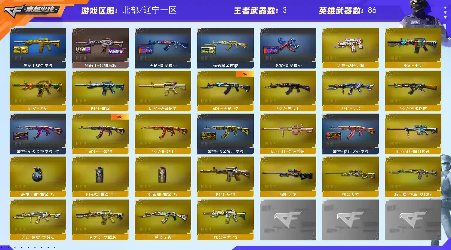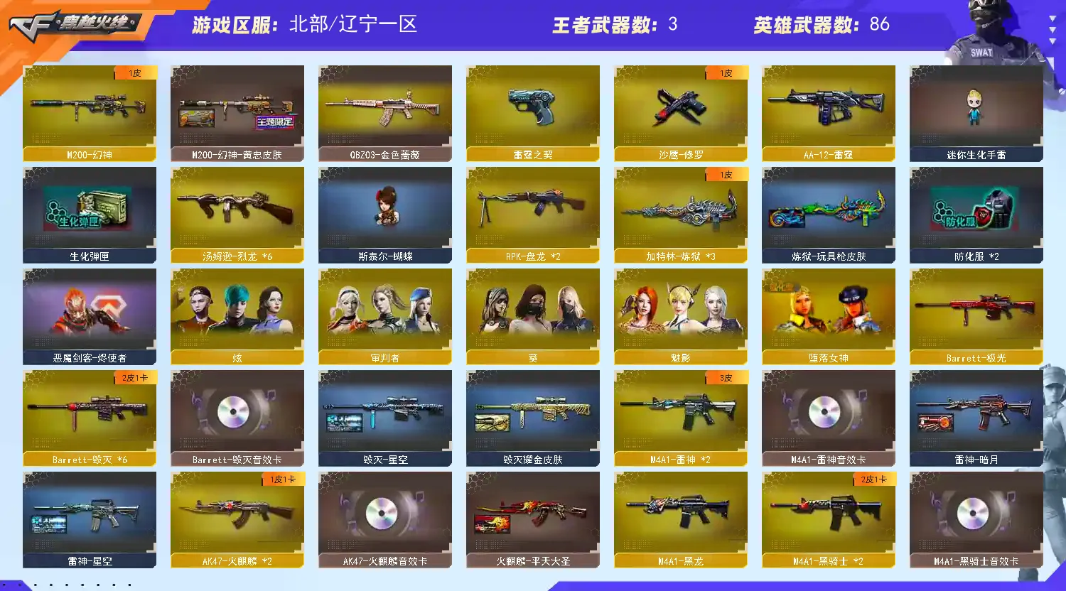可排位92V/M200-幻神+黄忠/6烈+蝴蝶/QBZ蔷薇/雷霆王者套/M4A1-雷神/M4A1-黑