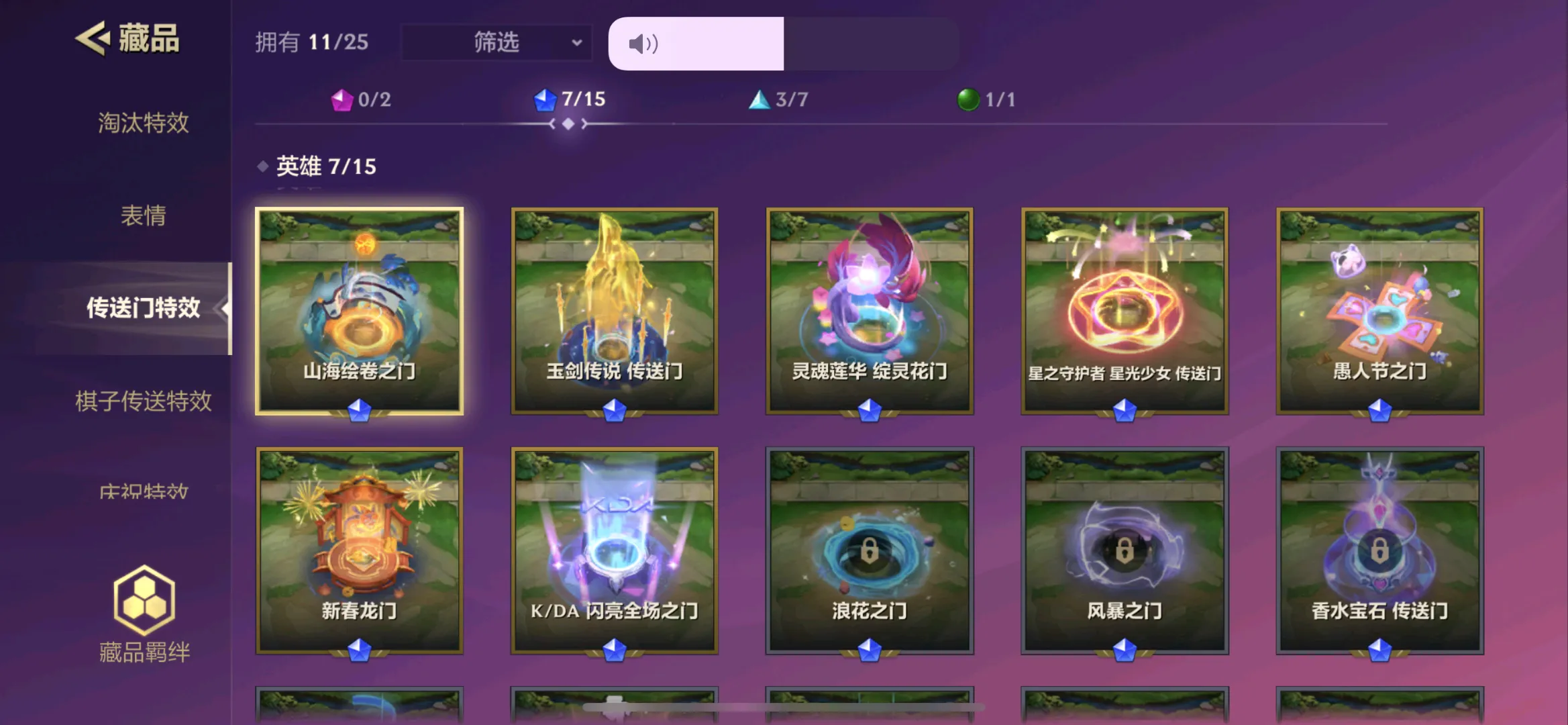 K/DA ALL OUT!✅山海绘卷之门✅玉剑传说 传送门✅灵魂莲华 绽灵花门✅星之守护者 星光少女 传送门✅愚人节之门✅新春龙门✅K/DA 闪亮全场之门✅神龙尊耆 碧波风暴✅山海流云✅kda至强之音✅踏歌之行