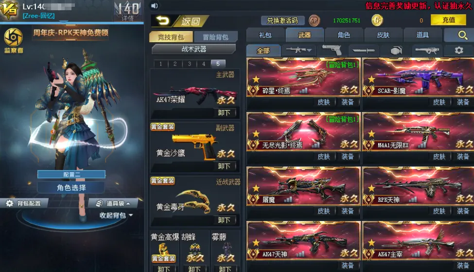 九传说 碎星终焉 神域传承 伏虎满配 撼天贰 丧钟 花束 无限ex金蛇皮肤 紫水晶 荣耀ak淬火 尼泊尔淬火 屠魔 末日审判