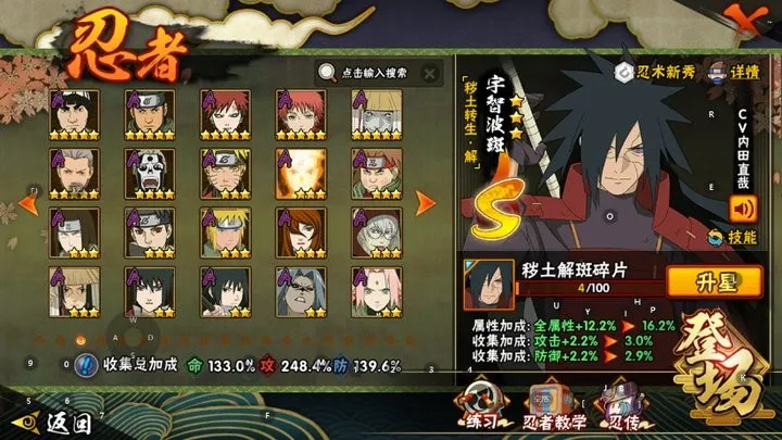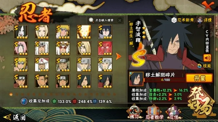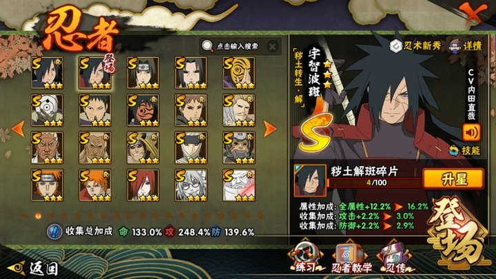 【 V12】【41S忍者54A忍者1865W战力-50高招券】S级忍者(40个):猿飞日新,宇智波「须佐能乎」,自来也,手,波风水门,大丸,恩「天道」,鬼灯幻月「二代目水影」,神秘面只男,千手间。艾「四代目雷影」,千手杜间,宇智波班,长门「秽土转生」,鉴飞日斩「移土转生」,金角·银角「土转生」,波风水门「秽土转生」。无「二代日土影」,纲手「百豪」。千手丽间「秽土转生」,半薇「移土转生」。字智波研「白面具」,艾「三代目雷影」,字智波资「秽土转生」,药师兜「仙人模式!。怀·天道「超」,自来也「舞之豪杰」,宇智波跳「移土转生」。罗砂「四代目风形!,千手柱间「秽土转生!,宇智波带士「忍界大战」,宇智波再「木叶创立」。迈特「死门」,漩涡鸣人 「九喇嘛连结」。大简本金式「博人传」,春野腰 「忍界大战!,神秘面具男 「红夜之刃」,宇智波佐助「永恒万花筒,千手柱间「本叶创立」,宇智波斑「土转生·解】