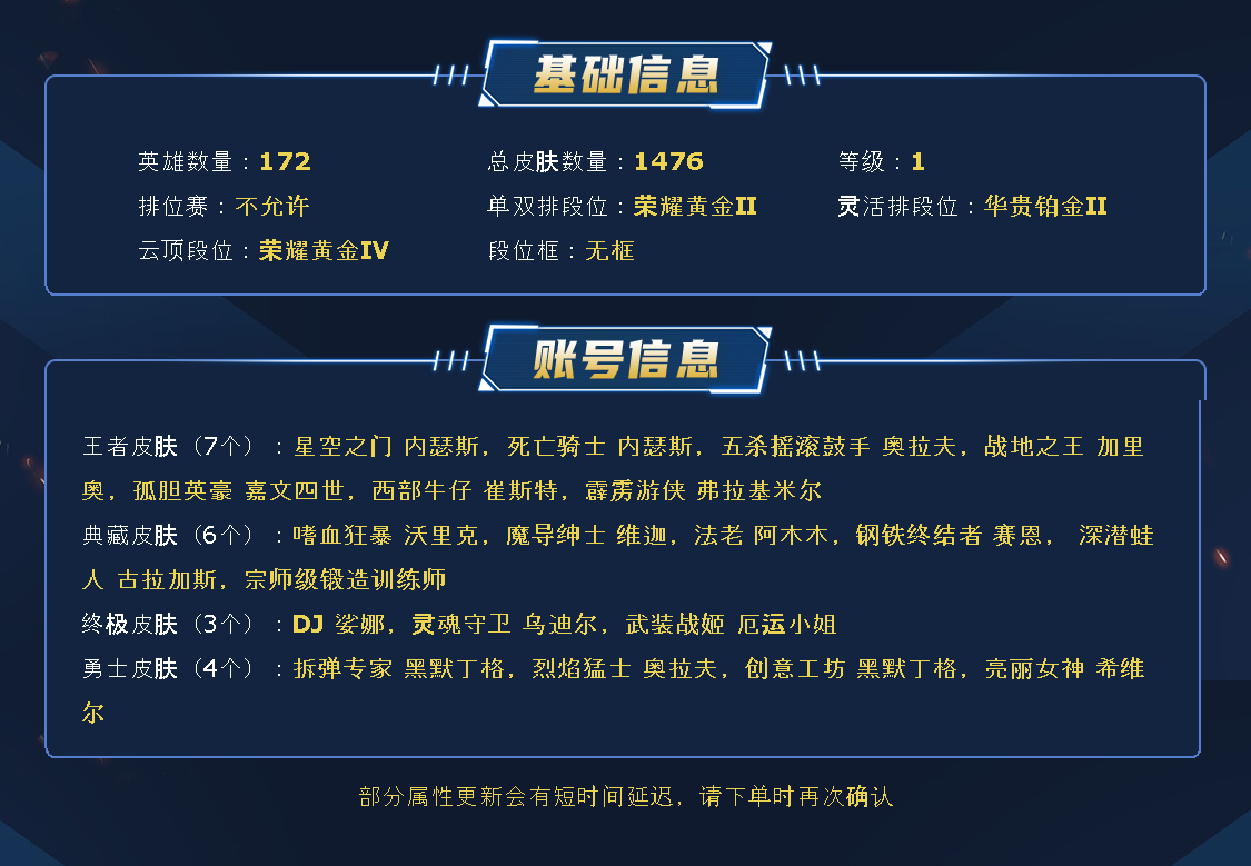 ~~喜欢记得收藏~~可排位~~1300皮全英雄丨867原皮373炫彩丨90神话/至臻/海克斯丨灵魂莲华套丨斩星剑圣丨御星艾希丨创星璐璐丨泳池女警丨勇敢的心丨嫦娥皎月丨替父从军丨EDG男枪丨青花瓷ez丨羊年金克斯丨星守狐狸ez丨神龙尊者李青丨KDA卡莎寡妇丨觅心悠米金克斯丨幽梦玫瑰辛德拉丨心之刚厄斐琉斯丨神凰行者萨勒芬妮丨玉剑男刀女刀剑圣丨鼠年武器瑟提日女丨至高天奎桑提薇古丝丨IG卡莎剑姬妖姬刀妹丨电玩女警女枪瑞文人马~~租之前尽量查一下游戏ID,确保段位是您需要的,避免浪费您的时间~~请勿挂机逃跑故意送人头,谢谢合作,谢谢~~