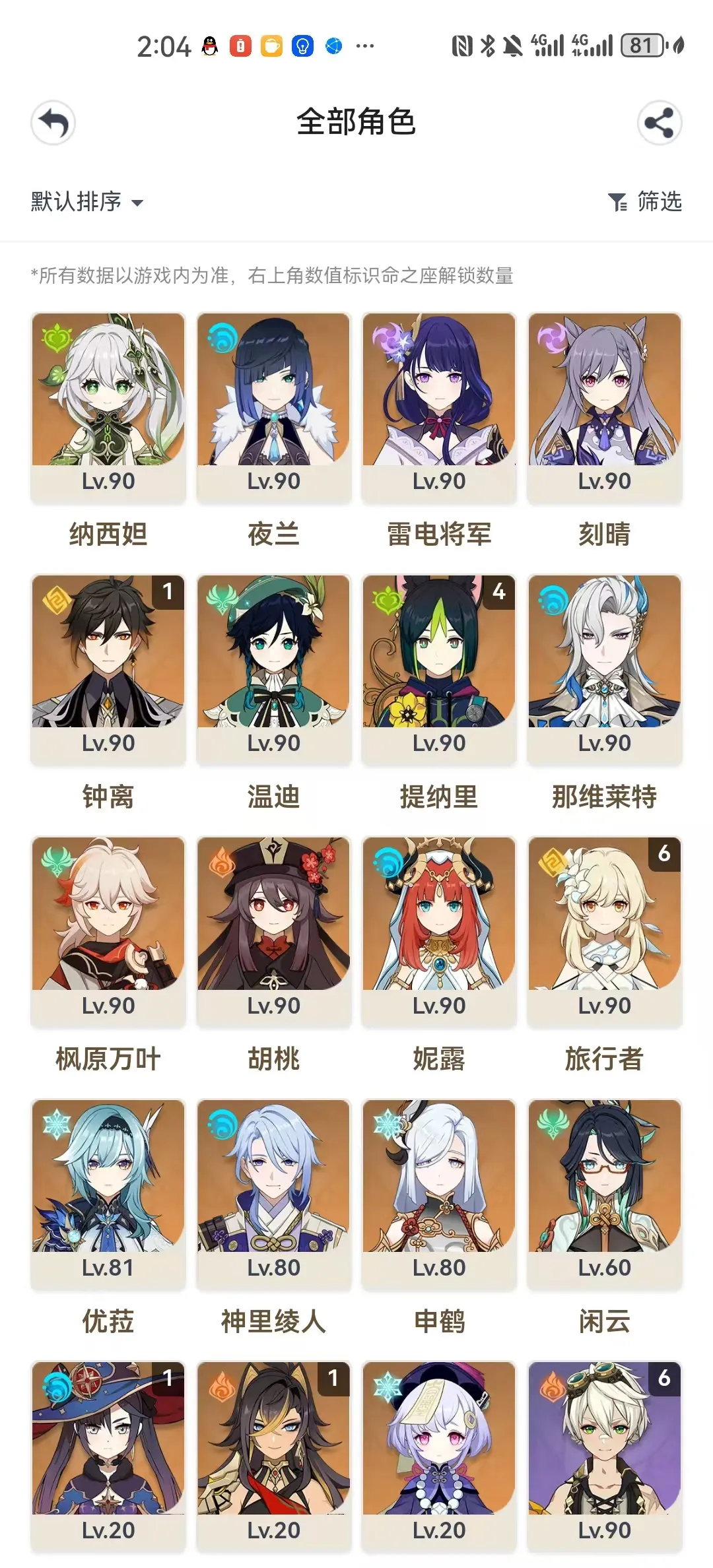 【全平台】 精品账号特价!低价租56角色【雷神 】【那西妲 】【优菈】【胡桃】