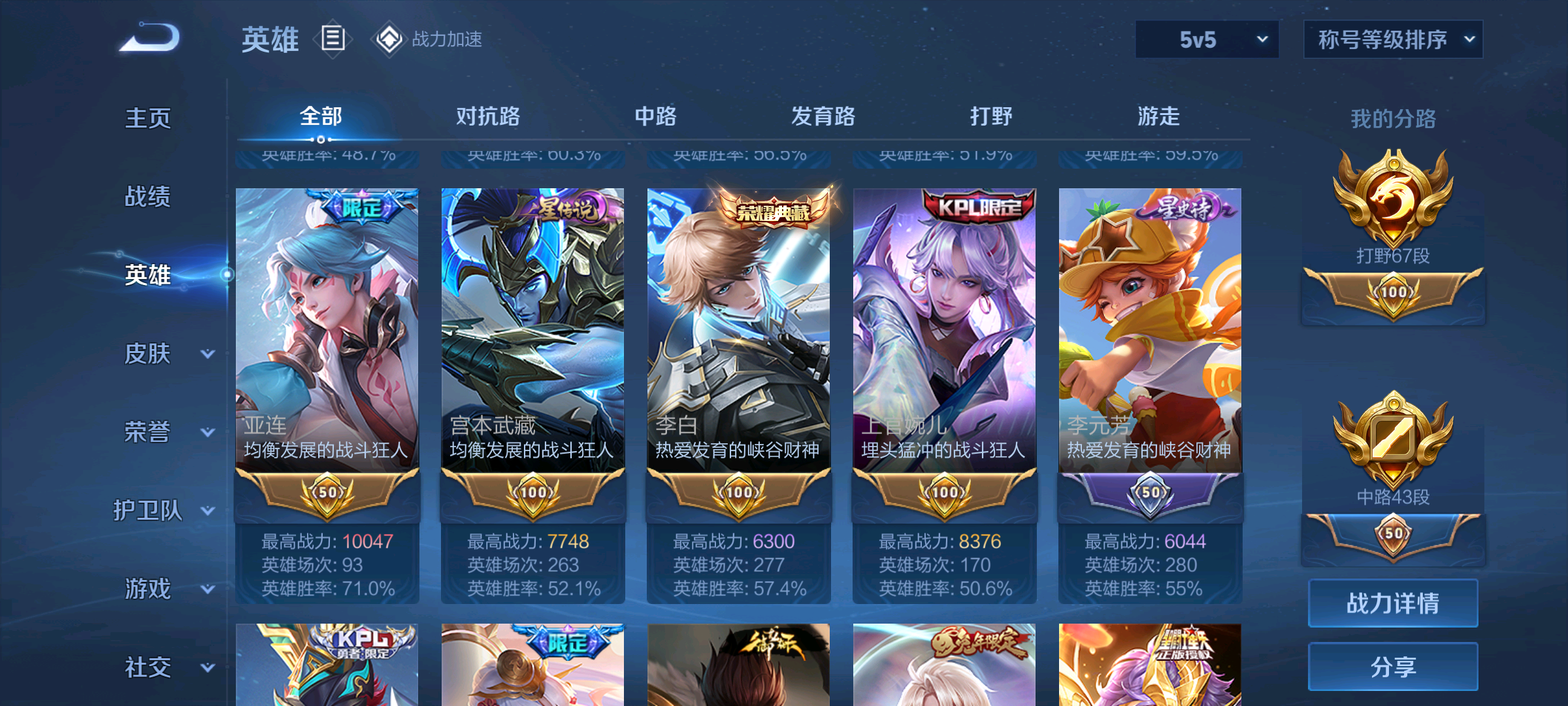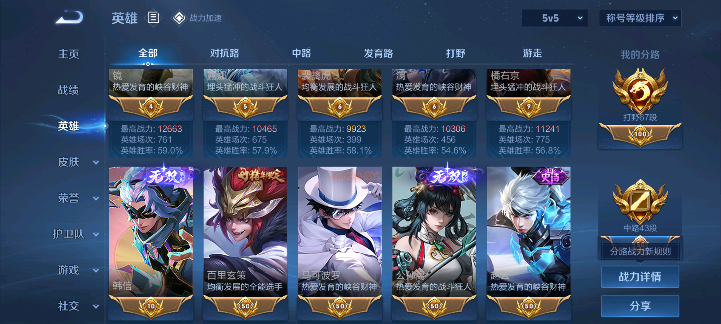 【安卓】 V10野王带妹🔥520皮6珍品限定🔥瑶水瑶珍🔥68段打野全能大师14省标🔥