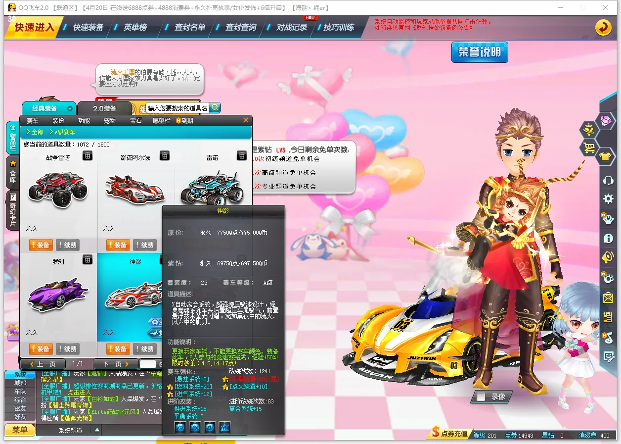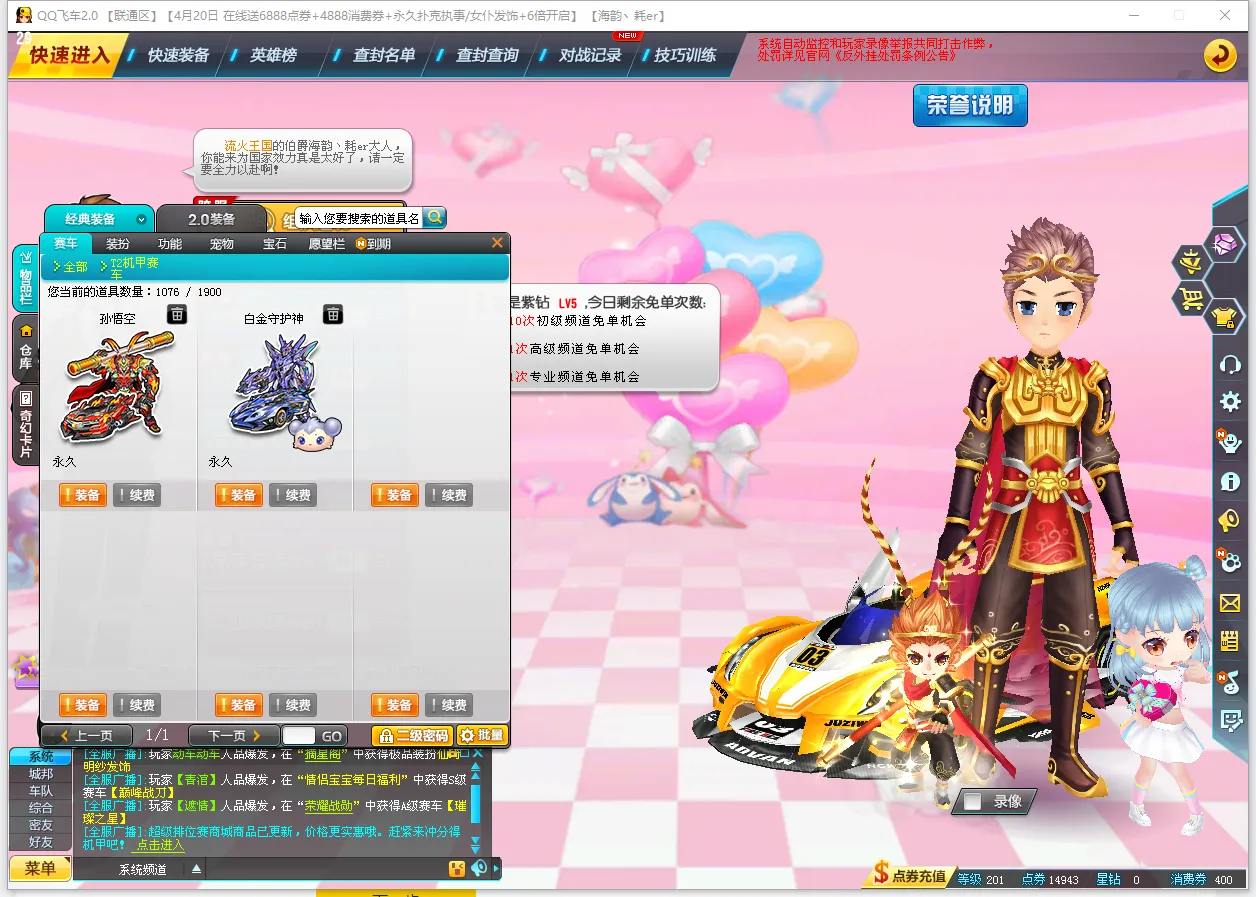 全29S烈焰新星❤炫酷T2孙悟空❤觉醒T2白金守护神❤T1朱雀❤上级A神影外改侍魂套❤上级A罗刹❤雷诺家族战争雷诺❤凤凰雷诺❤大圣雷诺❤雷诺外改❤阿尔法❤金影狮王❤竞速骑宠齐天大圣❤强化5白金神兽❤强化5海的女儿❤强化8圣诞麋鹿❤2座椅❤至尊宝套装❤男大衣柜❤动物园❤请素质文明租号,如果发现封号追究法律责任。谢谢大家配合❤祝各位游戏开心❤喜欢请收藏好评谢谢