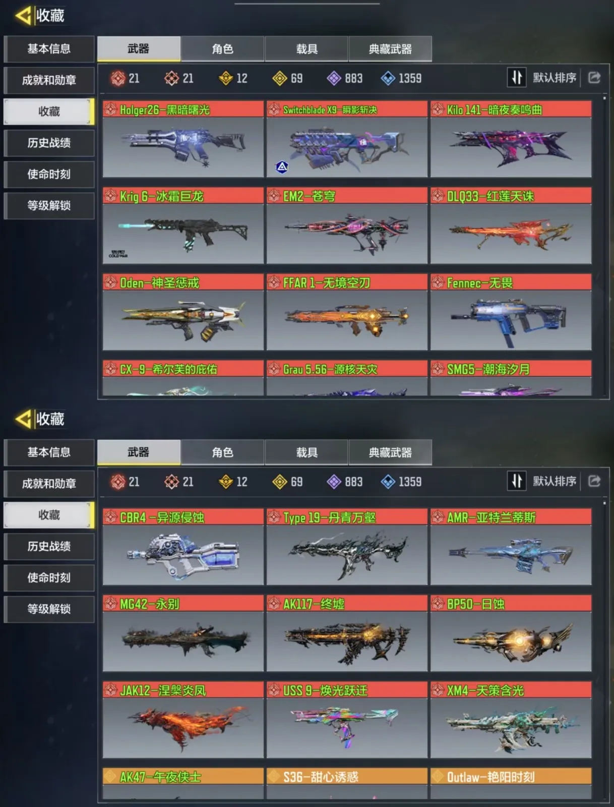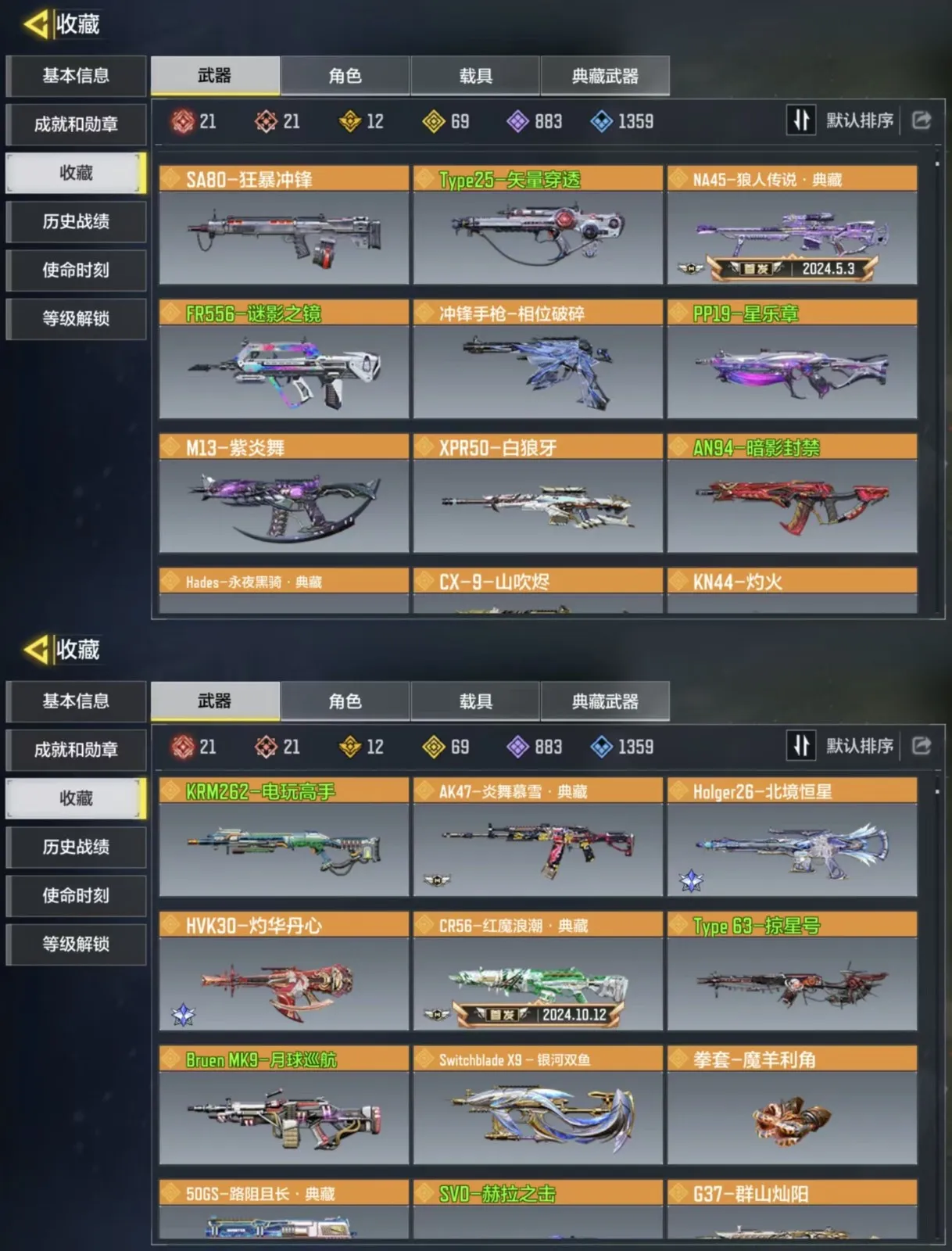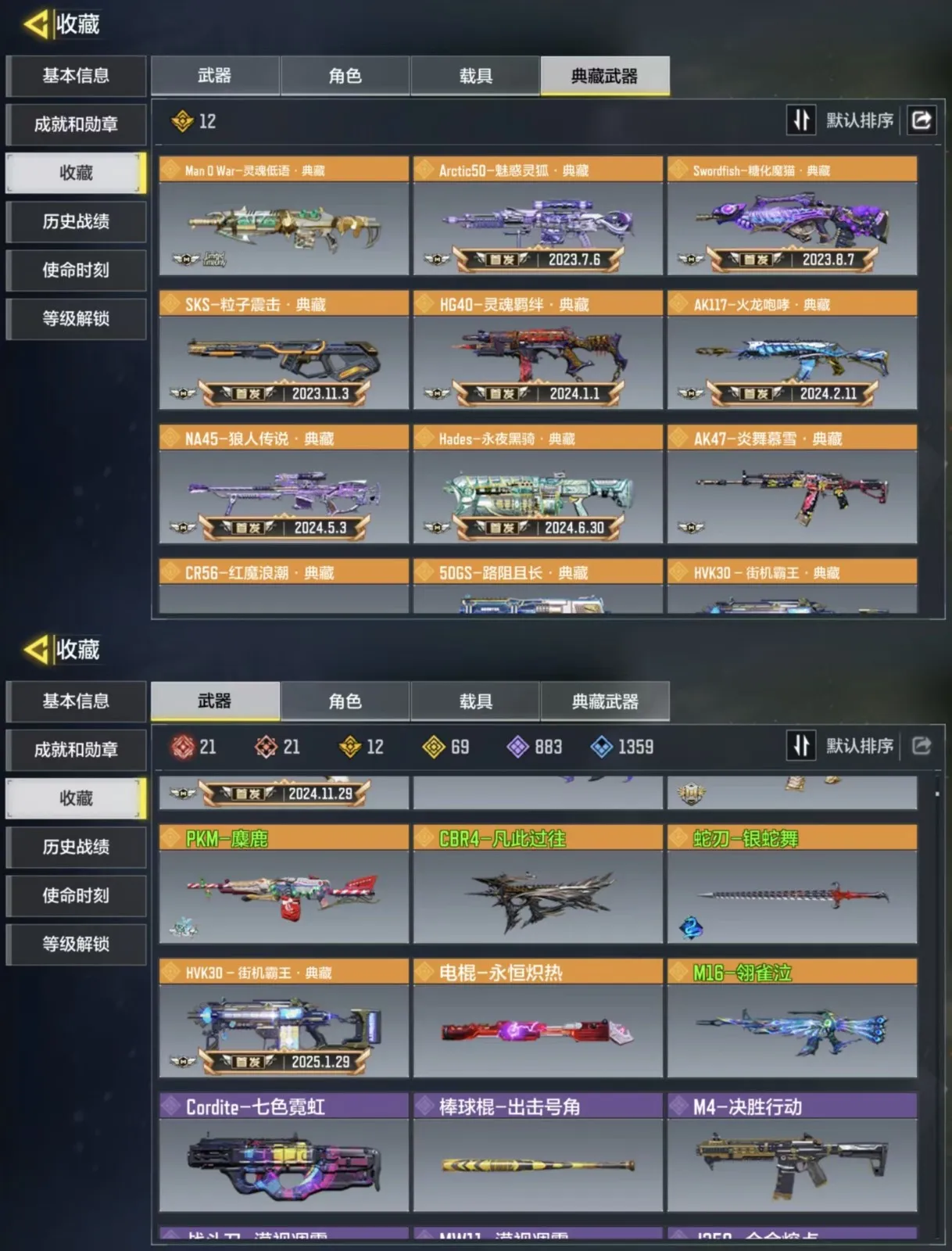 典藏🦄:Man0 War-灵魂低语·典藏✅Arctic50-魅惑灵狐·典藏✅Swordfish-糖化魔猫·典藏✅SKS-粒子震击·典藏✅HG40-灵魂羁绊·典藏✅AK117-火龙咆哮·典藏✅NA45-狼人传说·典藏✅Hades-永夜黑骑·典藏✅AK47-炎舞慕雪·典藏✅CR56-红魔浪潮·典藏✅50GS-路阻且长·典藏✅HVK30-街机霸王·典藏