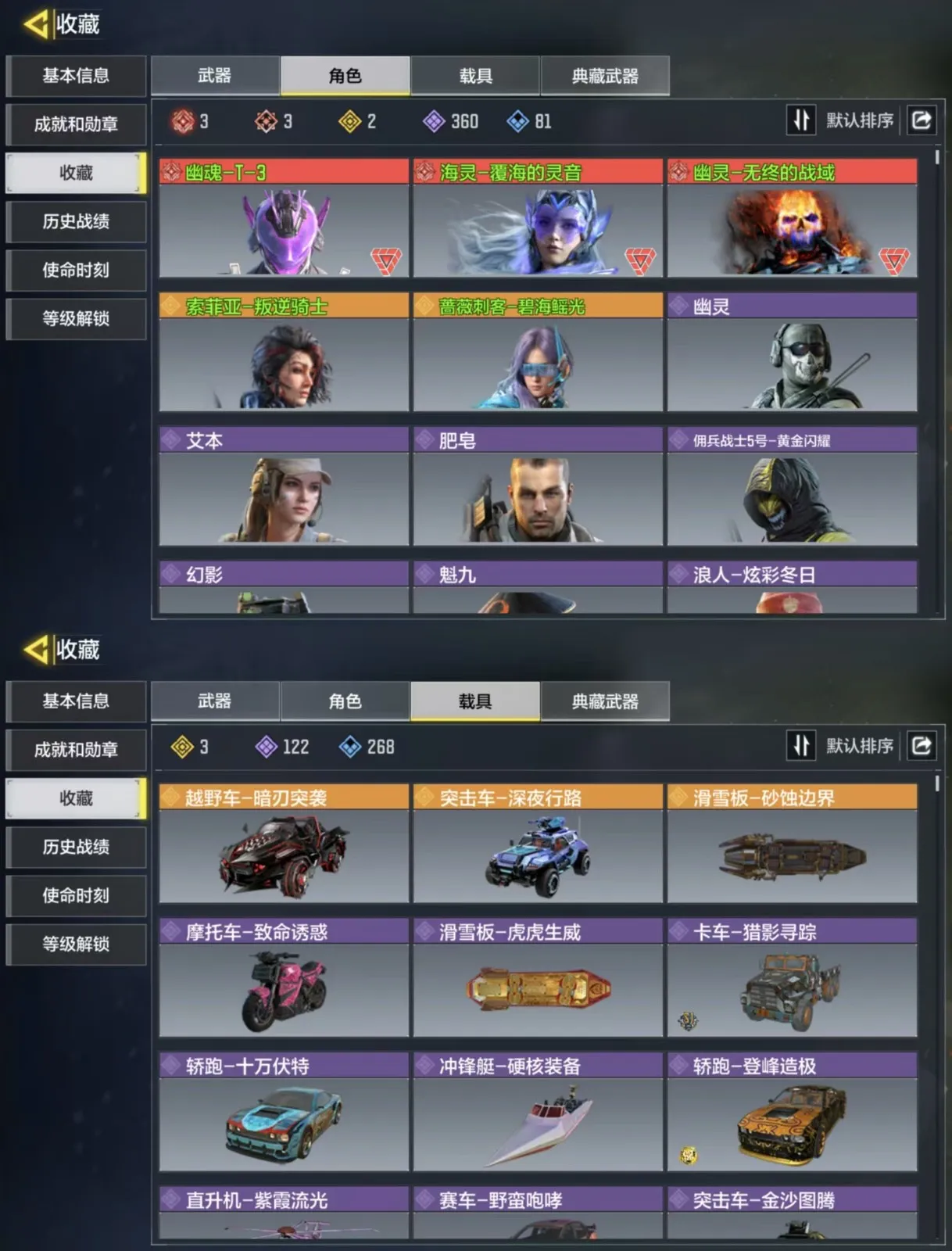 幽魂T3✅海灵-覆海的灵音✅幽灵-无终的战域✅索菲亚-叛逆骑士✅蔷薇刺客-碧海鳐光✅越野车-暗刃突袭✅突击车-深夜行路✅滑雪板-砂蚀边界