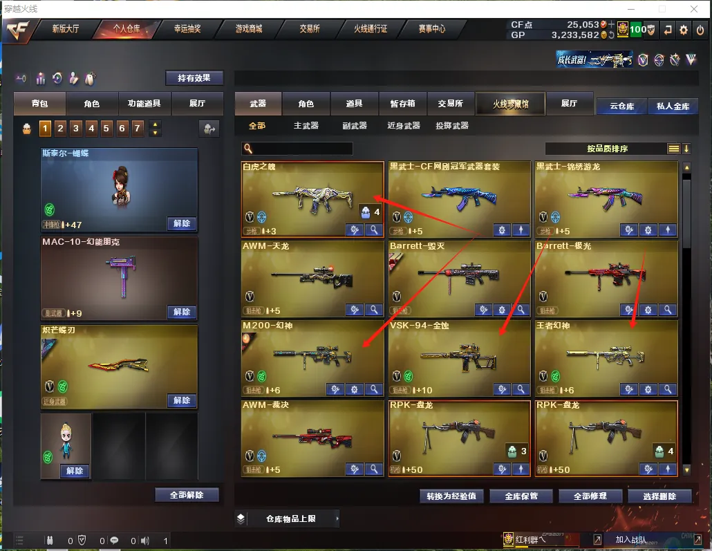 【主武器】最新传说步枪:神威天绫/九霄圣角/炼狱奇幻宇宙万象/传说圣谕/斯太尔幻面令狐/传说幽瞳/传说圣谕/传说光耀/传说夜影/玄豹步枪/白虎/m200-幻神/王者幻神觉醒/VSK94金蚀/⑥烈龙⑥盘龙斯太尔蝴蝶异变清道夫MK5炽火炎龙炼狱悦蓝觉醒炼狱小刚/KAC狂怒咆哮/白虎之魄觉醒/qbz云龙/火麒麟/黑龙/雷神/黑骑士/黑武士/超新星/青龙/朱雀/M4夜魔/qbz天罚/蔷薇qbz/烈火/烈火动感闪耀/王者之魄觉醒/王者冰魄觉醒/王者风势觉醒/黑武士网剧套装/天龙/毁灭/极光/裁决/炼狱/aa12雷霆/2火麒麟绝技/王者炎心/王者之魄/炫金雷神/王者之戮/毁灭孙三炮/炫金毁灭/冰龙/双面神/金魔/黑龙吞噬者/神圣爆裂者+末日3/死亡之眼/金色小号/EVO赤血龙魂/M37葵/炼狱-百战金芒