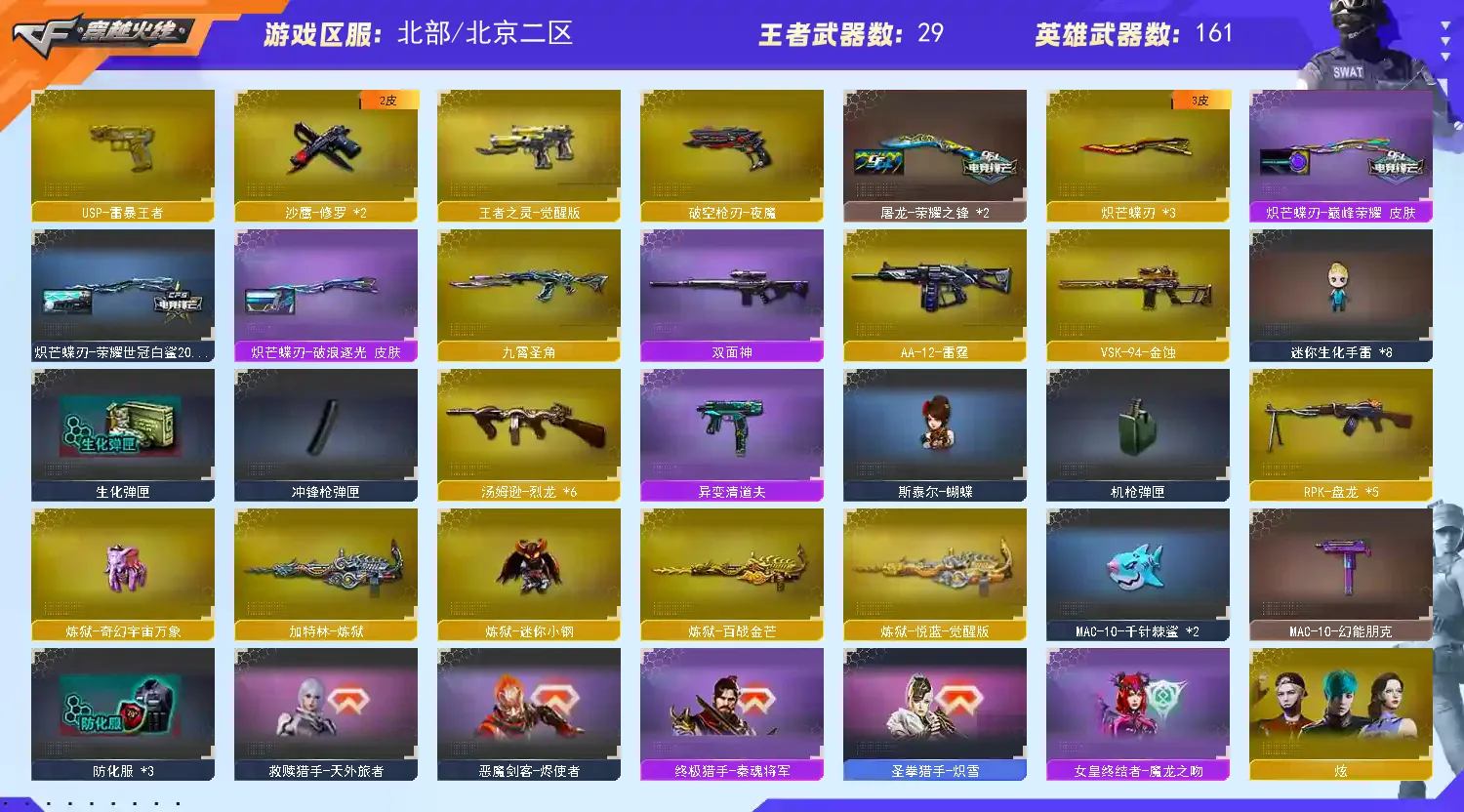 【道具】紫金大元首/全背包/vip6/变异宝贝/疯狂宝贝/灵魂忍者/伪装幽灵/迷雾幽灵/绿巨人/全弹夹/勇往直前包/终极猎手秦魂将军皮肤/生化爆破全装