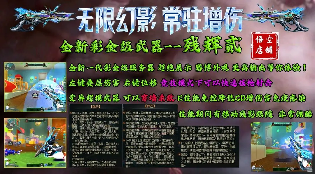 【英雄配件武器】: 浮光 曜弦 崩雷 伯言 渊瞳 归墟血契 星斗 天际 寂灭 月隐 奏鸣 鬼刃修罗 藤木蔓芯 幻宇星涡 尘埃 绝境 弧光 跳跳锤 核子裂变 迷你派拉 裂隙行者 伏虎 盖亚 赛博野兽 玄天 灵狩 不朽 终末之弩 寂静白龙 花束 原石之力(可原地复活) 原石之怒 幻锋 螳螂臂 浪淘沙 翎羽 风暴 破空 英勇比伯 陷阵 无踪 冰河 猎犬 霓虹旋风 禁止通行 极寒体验 等等