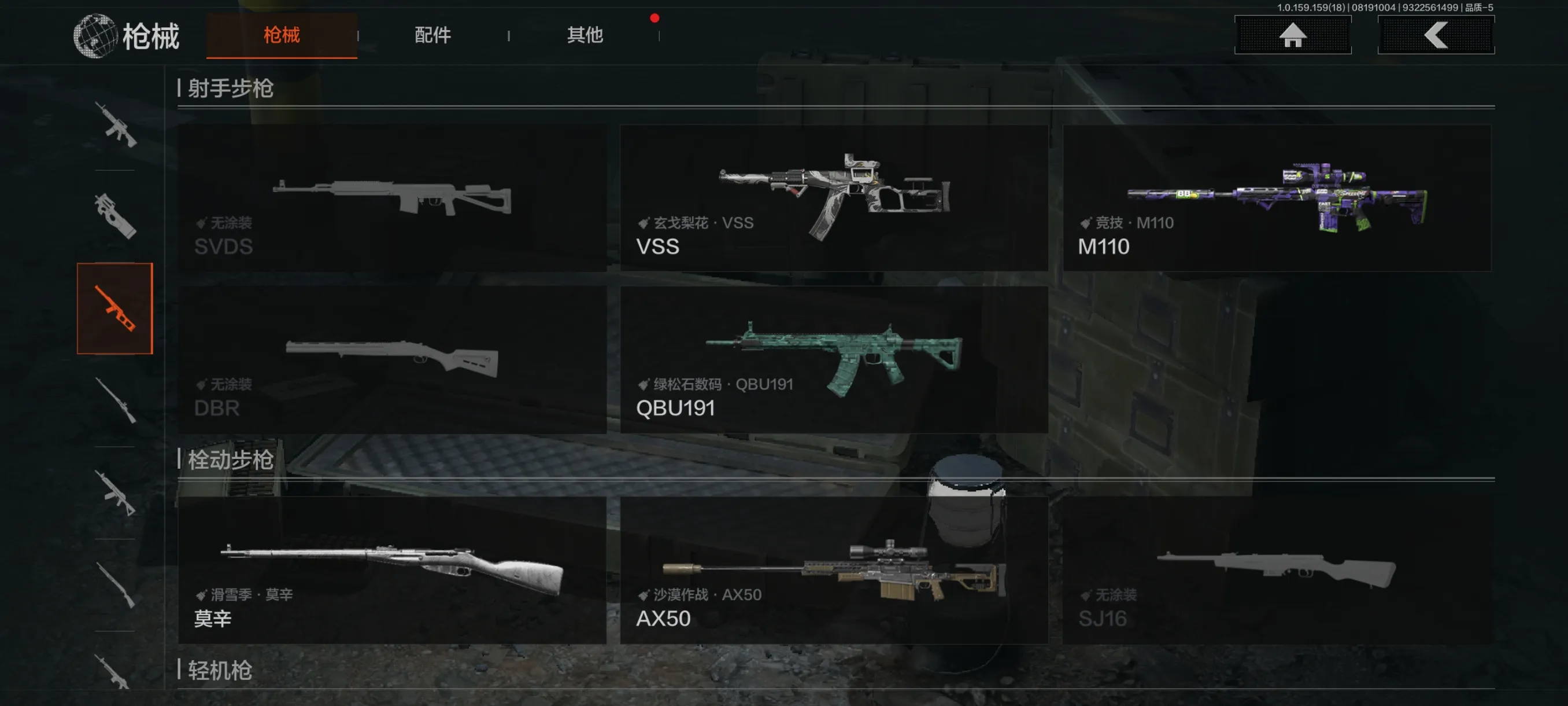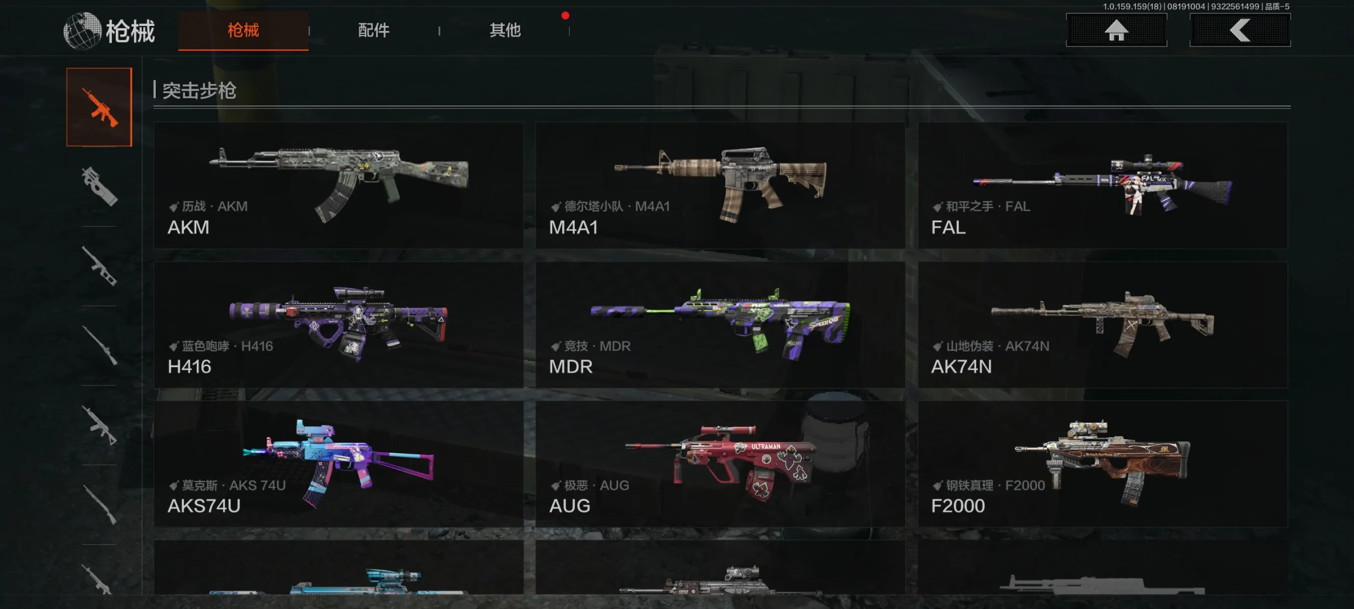 30级,历史最高段位:暗区传说【近战武器】:寒牙手刺,野战折刀,急袭弯刀,工兵铲,来战开山刀;【手套】:裁决手套,急袭手套;【角色皮肤】:深潜行者Ⅱ,都市夜影套装,黑金指挥官作战服,林地作战服,黑金作战服,九号特遣,荒漠蝰蛇,白狼连队作战服,街区守卫,特遣小队;【突击步枪】:火力倾泻AKM,历战AKM,德尔塔小队M4A1,秋宴FAL,和平之手FAL,林中人FAL,蓝色咆哮H416,自喷网格H416,德尔塔小队H416,竞技MDR,来战AK74N,山地伪装AK74N,白狼连队AK74N,最后防线AKS74U,莫克斯AKS74U,极恶AUG,深潜F2000,钢铁真理F2000,战术大师F2000,炎夏浪花AR57,骑士之剑ACE31,旗帜AEK,绿松石数码Groza,森林迷彩T951,绿松石数码T951,林地数码T03,深潜T03,北国内卫AK12,危险地带MCX,绿松石数码9A91;【冲锋枪】:火力倾泻MP5,森林迷彩MP5,雪山之王MPX,玄戈梨花MPX,涂鸦MPX,脊峰速降MPX,无彩调色P90,危险地带P90,兔年春季限定,苏梅克UMP45,自喷网格UMP45,危险地带M3A1,危险地带T79,荒漠涂绘T79,沙色Vector45,绿松石数码T85,都市黄Vector9,山地伪装Vector9,滑雪季Suomi,龙影Suomi;【射手步枪】:旗帜SVDS,玄戈梨花VSS,危险地带VSS,黑金国际M110,竞技M110,全地形数码M110,绿松石数码DBR,绿松石数码QBU191;【栓动步枪】滑雪季莫辛,沙漠作战AX50,绿松石数码SJ16;【轻机枪】:旗帜RPK16,火力倾泻RPD;【霰弹枪】:胜利锋刃S12K,无畏USAS12,真实之眼APR310,正在骇入DP12,雪原凌锋DP12;【卡宾枪】:绿松石数码SKS,异彩合金M14,滑雪季BM59;【手枪】:雪山之王G18C,秩序G18C,绿松石数码沙漠之鹰,滑雪季F57,水蓝F57手枪,深潜F57,碳黑M300;
