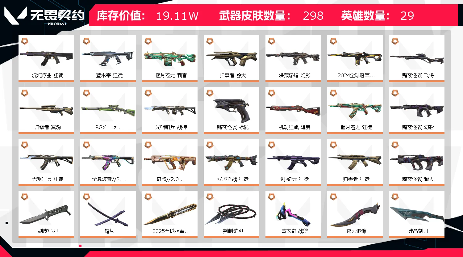 - 武器皮肤数量: 298