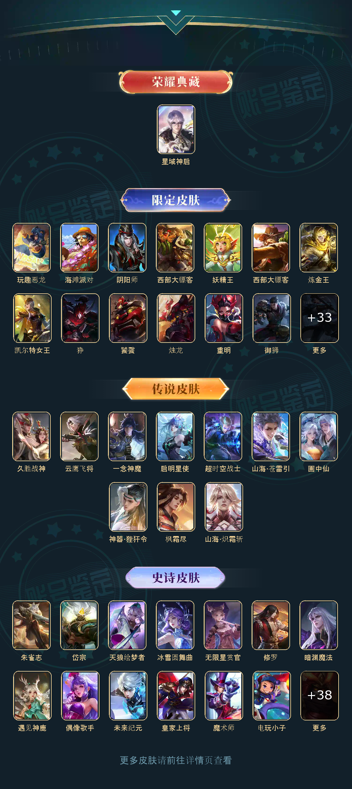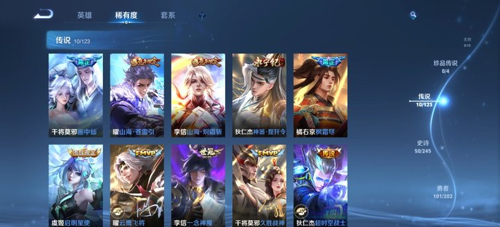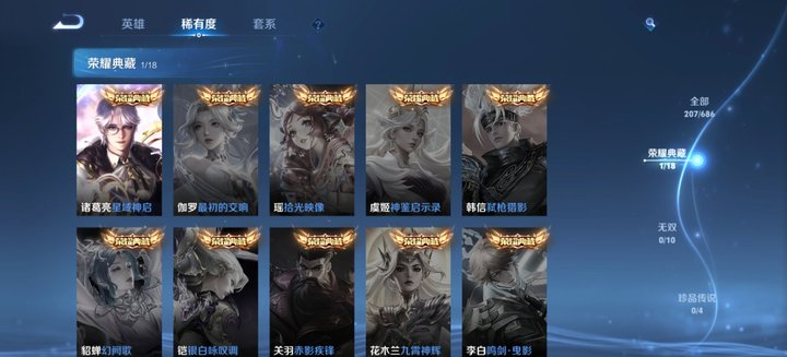 英雄数量122,典藏皮肤数1,皮肤数量207,久胜战神/星域神启