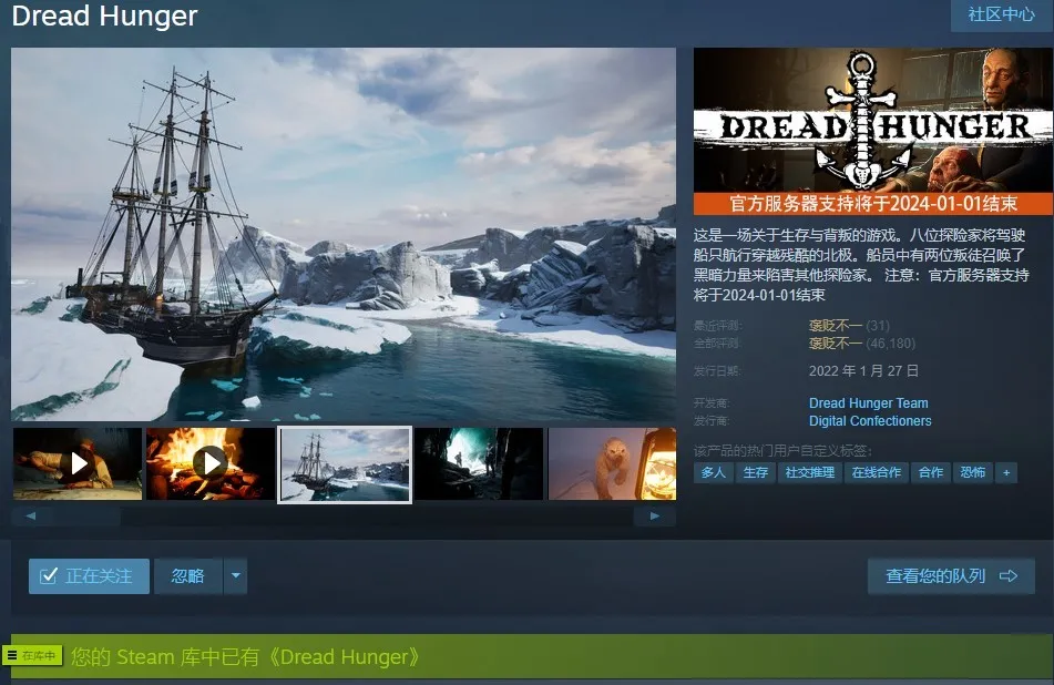 搜(鲸鱼)恐惧饥饿-Dread Hunger⭐2000+小时⭐全声望皮肤⭐可联机⭐包周更合适
