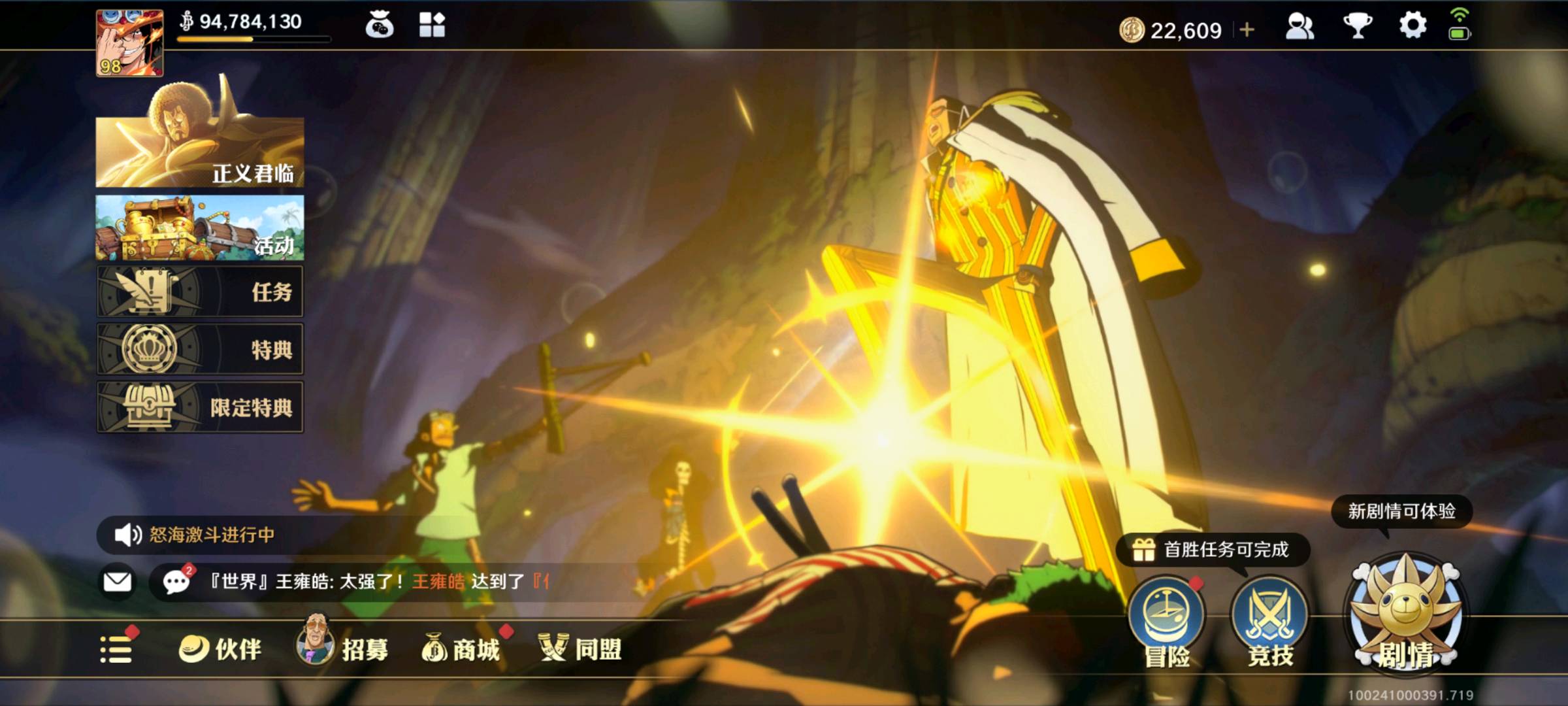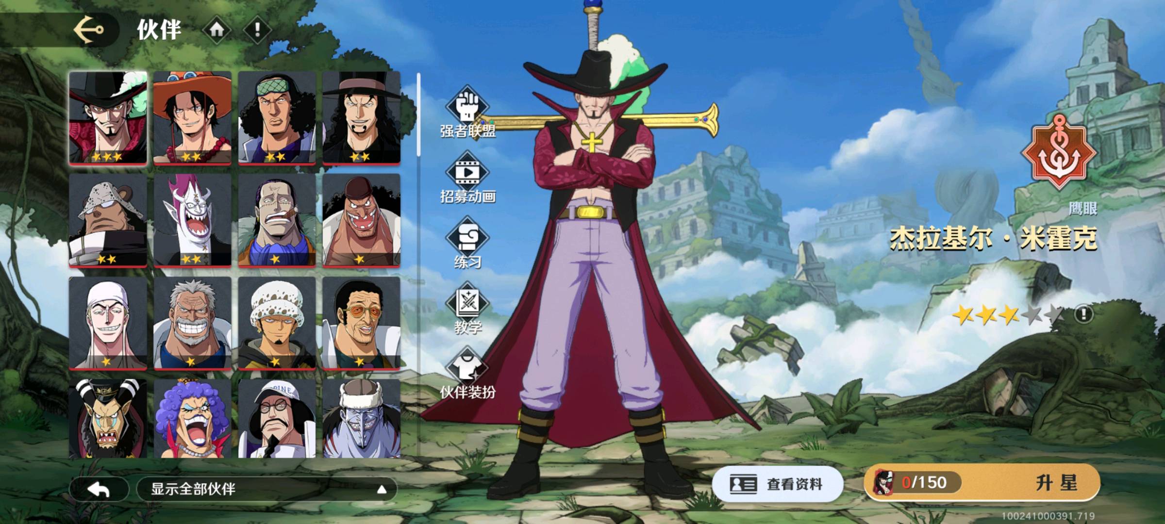 【安卓】 87伙伴9400w全金币角色,战国,人妖王,艾尼路,青雉,莫利亚,大熊,鹰眼,艾斯,老沙,卡普