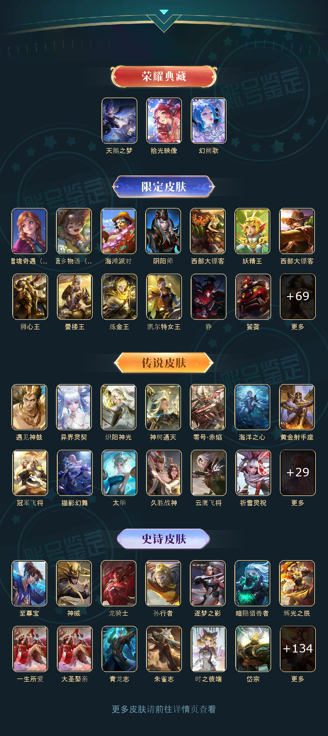 贵族等级V10,英雄数量125,典藏皮肤数3,皮肤数量453,