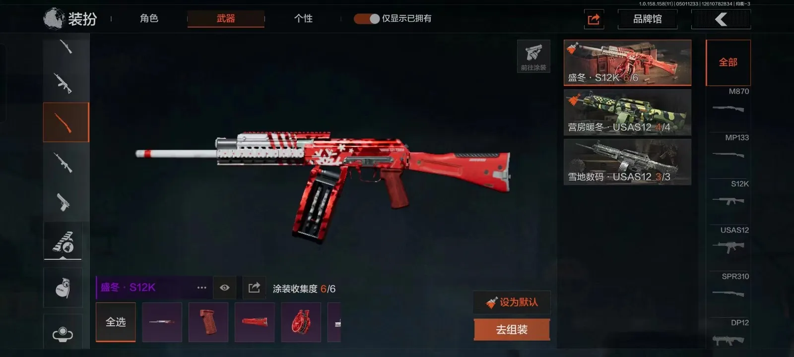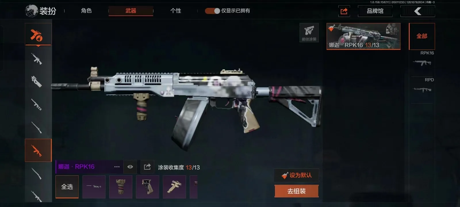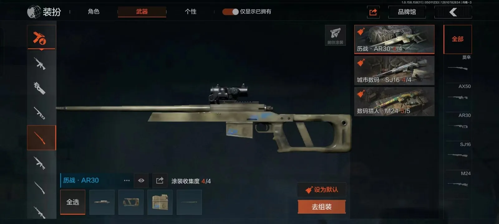 等级30 冬日冰镐 冬夜AK 来战AK 散花海涂装 盛冬涂装 历战FAL 玄戈梨花MPX 灰鼠幻歌P90 娜迦RPK 缟兵玄墨VSS 盛冬SK 营房棉服