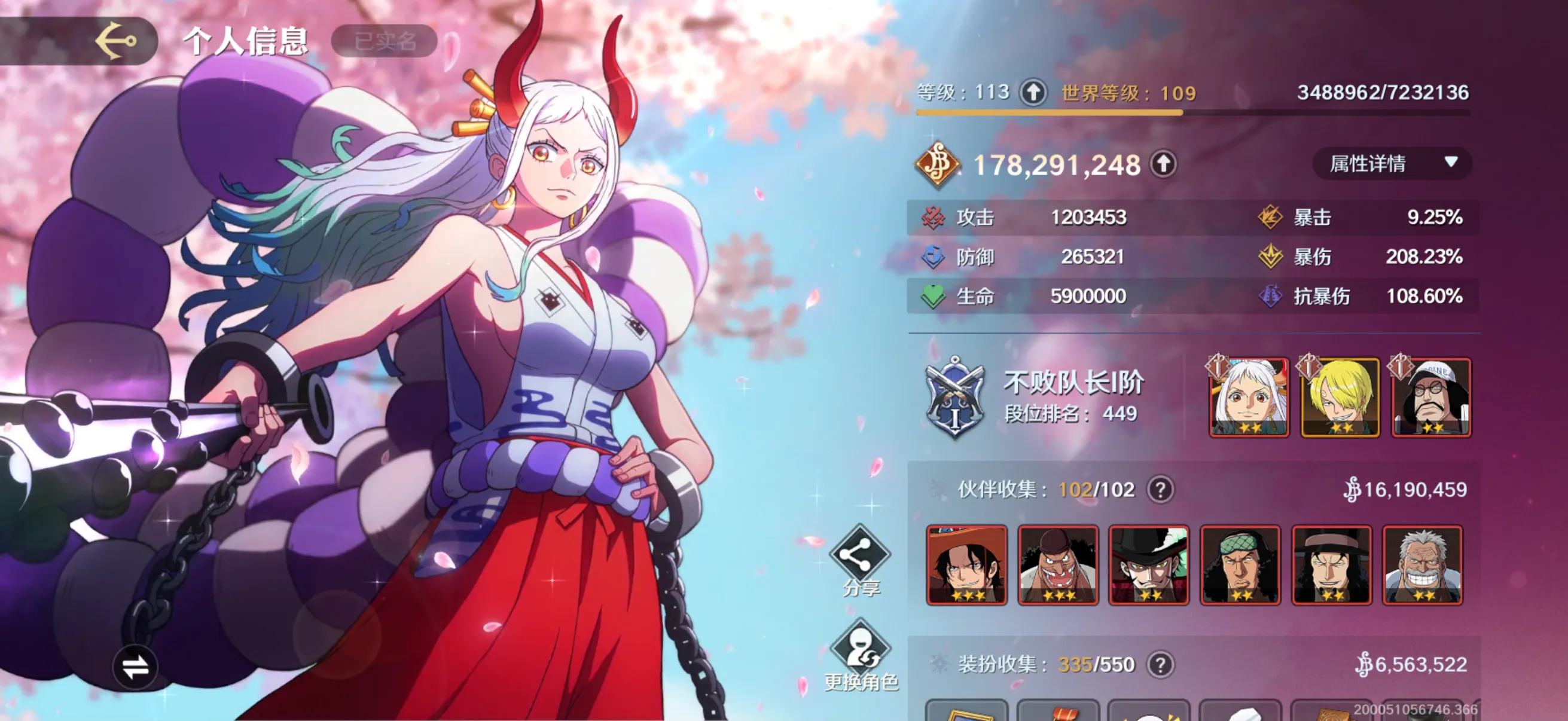 【安卓】 1.7亿赏金,102全伙伴,雷利,顶上老沙已秒