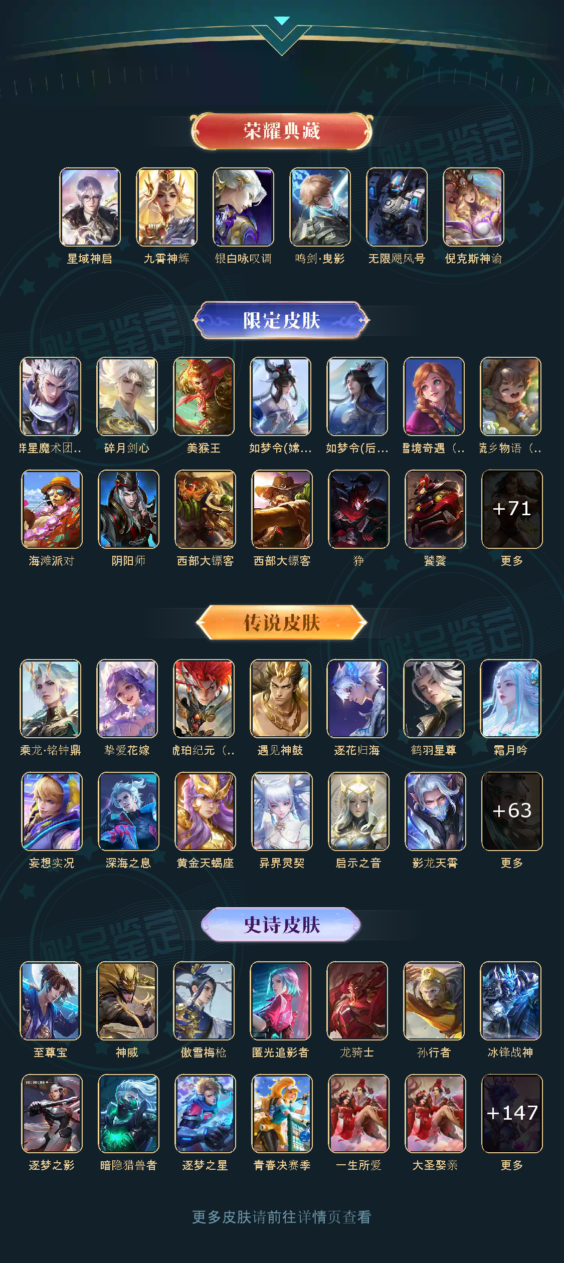贵族等级V10,英雄数量125,典藏皮肤数6,皮肤数量508,