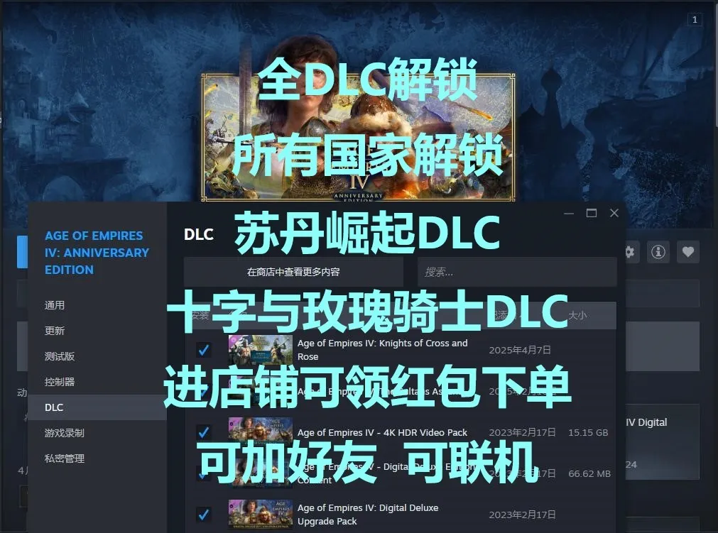 帝国时代4⭐终极版⭐全dlc商城清空⭐详情看描述⭐十字玫瑰骑士已购,苏丹的崛起