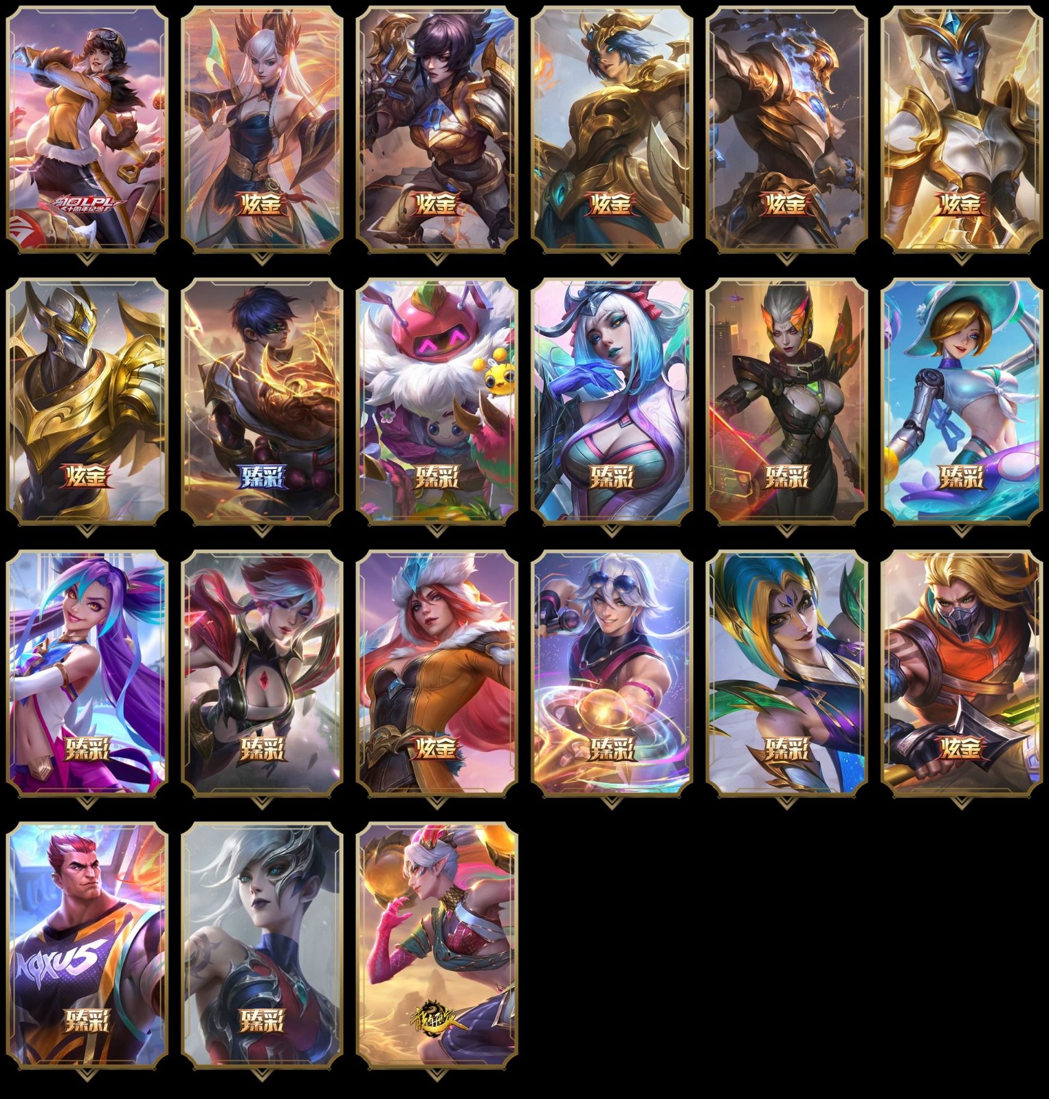 【重要皮肤】双城之战2指挥官凯特琳至臻 狼神英灵斯维因至臻 暗星女王黛安娜至臻 魔域梦魇泽丽至臻 T1杰斯至臻 幻灵狮心蕾欧娜至臻 人工智能悠米至臻 至高天凯尔至臻 西部魔影伊芙琳至臻 天龙之子伊泽瑞尔至臻 北极星钢影卡蜜尔至臻 心之钢永恩至臻 魔女阿卡丽至臻 斗魂觉醒萨科至臻 DRX亚托克斯至臻 绝息圣堂厄运小姐至臻 青花瓷丽桑卓至臻 星之守护者艾克至臻 海之歌萨勒芬妮至臻 西部魔影猎天使恶魔泰隆至臻 幻灵战斗猫金克丝至臻 神凰行者烈羽焰凰霞至臻 魔女婕拉至臻 魔女乐芙兰至臻 真实伤害亚索至臻 神龙尊者炎龙瑟提至臻 黑夜使者凯隐至臻 KDA伊芙琳至臻 KDA阿卡丽至臻 战斗学院拉克丝至臻 战斗学院拉克丝2022至臻 烈焰美人薇恩至臻 电玩女神凯特琳至臻 星之守护者妮蔻至臻 星之守护者妮蔻2022至臻 源计划正义艾瑞莉娅至臻 源计划正义艾瑞莉娅2022至臻 绒毛菲兹至臻 绒毛菲兹2022至臻 玉剑传说武剑仙至臻 玉剑传说武剑仙2022至臻 腥红之月亚托克斯至臻 腥红之月亚托克斯2022至臻 黑夜使者李青至臻 黑夜使者李青2022至臻 殿堂传奇乐芙兰 水晶巫灵泽拉斯 灰烬骑士莫德凯撒 海克斯科技雷克顿 海克斯科技嘉文四世 水晶掠夺者卡兹克 水晶圣骑塔莉垭 零之枪骑赫卡里姆 新创战纪希维尔 胜利剑圣易 胜利女神娑娜 胜利女神希维尔 胜利之王泰达米尔 胜利巨口克格莫 荣誉使者玛尔扎哈 玉剑传说舞剑仙 女帝格温 点心宝贝阿木木 替父从军花木兰 定海神珍孙悟空 虎痴之拳蔚 王国机神苍狼瑟提 胜利女神瑟庄妮 胜利机器人布里茨 胜利女神奥莉安娜 胜利枪神卢锡安 胜利之剑亚托克斯 幽梦玫瑰伊莉丝 觅心游侠卢锡安 北极星神黛安娜 寒冬精灵璐璐 圣诞老人德莱文 冰雪女神辛德拉 魄罗骑士瑟庄妮 魅惑女巫莫甘娜 大魔法锅布里茨 海之歌萨勒芬妮 泳池派对普朗克 泳池派对格雷福斯 克格汪 EDG佛耶戈 DWG奈德丽 iG卡蜜尔 iG洛 iG卡莎 iG艾瑞莉娅 iG乐芙兰 iG菲奥娜 SSG伊泽瑞尔 SKTT1烬 SKTT1辛德拉 SKTT1阿利斯塔 SKTT1瑞兹 SSW泰隆 SSW图奇 SSW辛吉德 SKTT1劫 SKTT1李青 暗杀星蒙多 暗杀星努努和威朗普 Fnatic迦娜 Fnatic库奇 Fnatic古拉加斯 Fnatic嘉文四世 Fnatic卡尔萨斯 冰雪节格雷福斯 冰雪节辛吉德 防暴士兵辛吉德 防暴天使凯尔 冠军典狱长锤石 冠军之矛卡莉丝塔 冠军之刃锐雯2016 冠军之血希瓦娜 冠军之隐劫 春晖神女艾希 鬼影重重魔腾 红桃杰克崔斯特 胡桃夹子萨科 警用试作体K9内瑟斯 南瓜头费德提克 女猎手希维尔 圣诞精灵崔丝塔娜 圣诞开心鬼提莫 圣诞狂欢基兰 圣诞狂欢努努和威朗普 圣诞老人古拉加斯 圣诞玩偶波比 无头骑士赫卡里姆 雪默丁格 雪装奈德丽 野兽猎人泰达米尔 英勇玩具兵普朗克 勇者阿狸 征服者韦鲁斯 暗影沃里克 阿木木主人不要我了 都铎王朝图奇 十五周年纪念希维尔 十周年纪念安妮 源代码乐芙兰 胜利凤凰艾尼维亚 斗魂觉醒莎弥拉 DJ娑娜 武装战姬厄运小姐 绝息圣堂洛