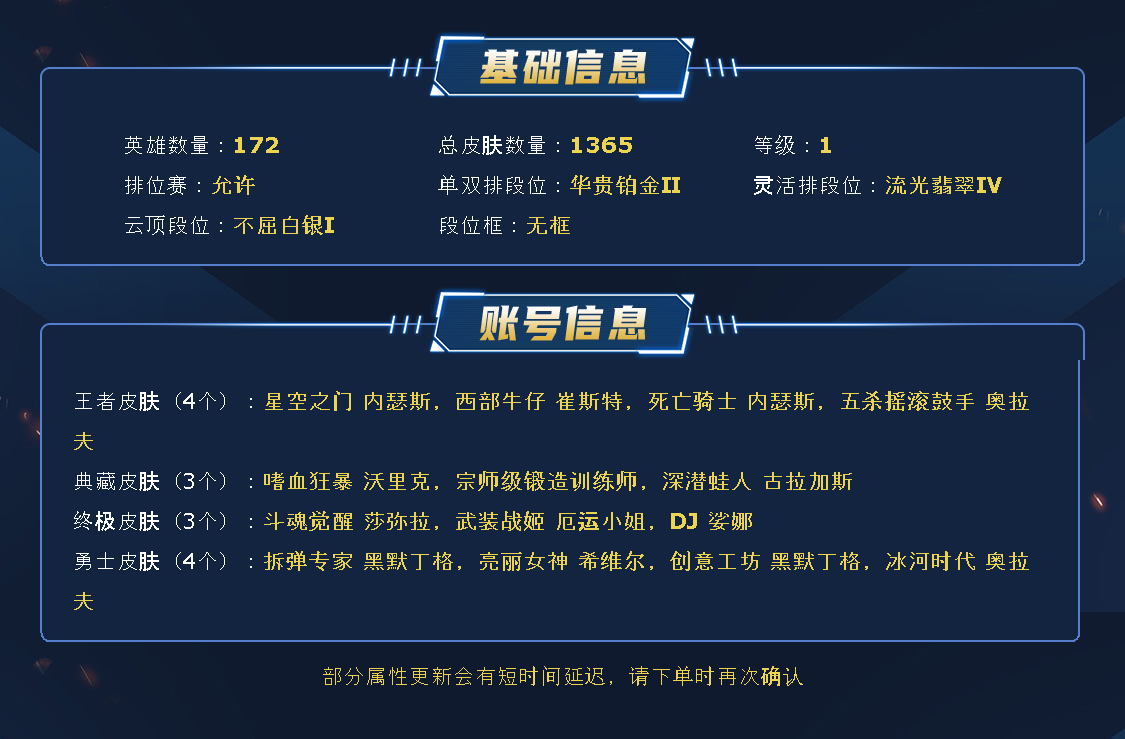 ~~喜欢记得收藏~~可排位~~1295皮全英雄~~租之前尽量查一下游戏ID,确保段位是您需要的,避免浪费您的时间~~请勿挂机逃跑故意送人头,谢谢合作,谢谢~~
