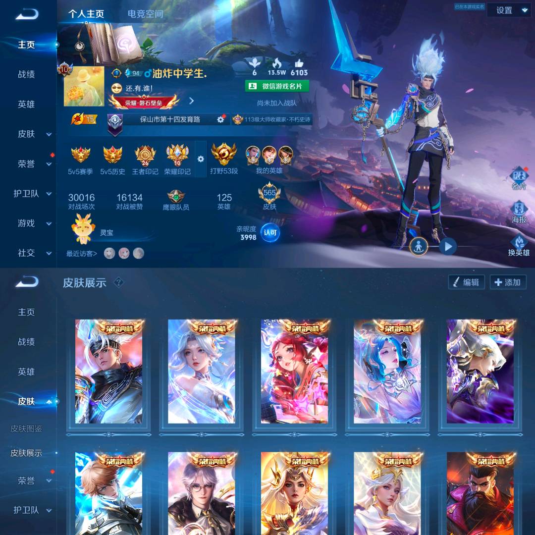 贵族积分全区榜一 发育路63段 满水晶 多星元 满皮肤按键 历史国服马克波罗、国服狄仁杰 、国服李白、国服公孙离等