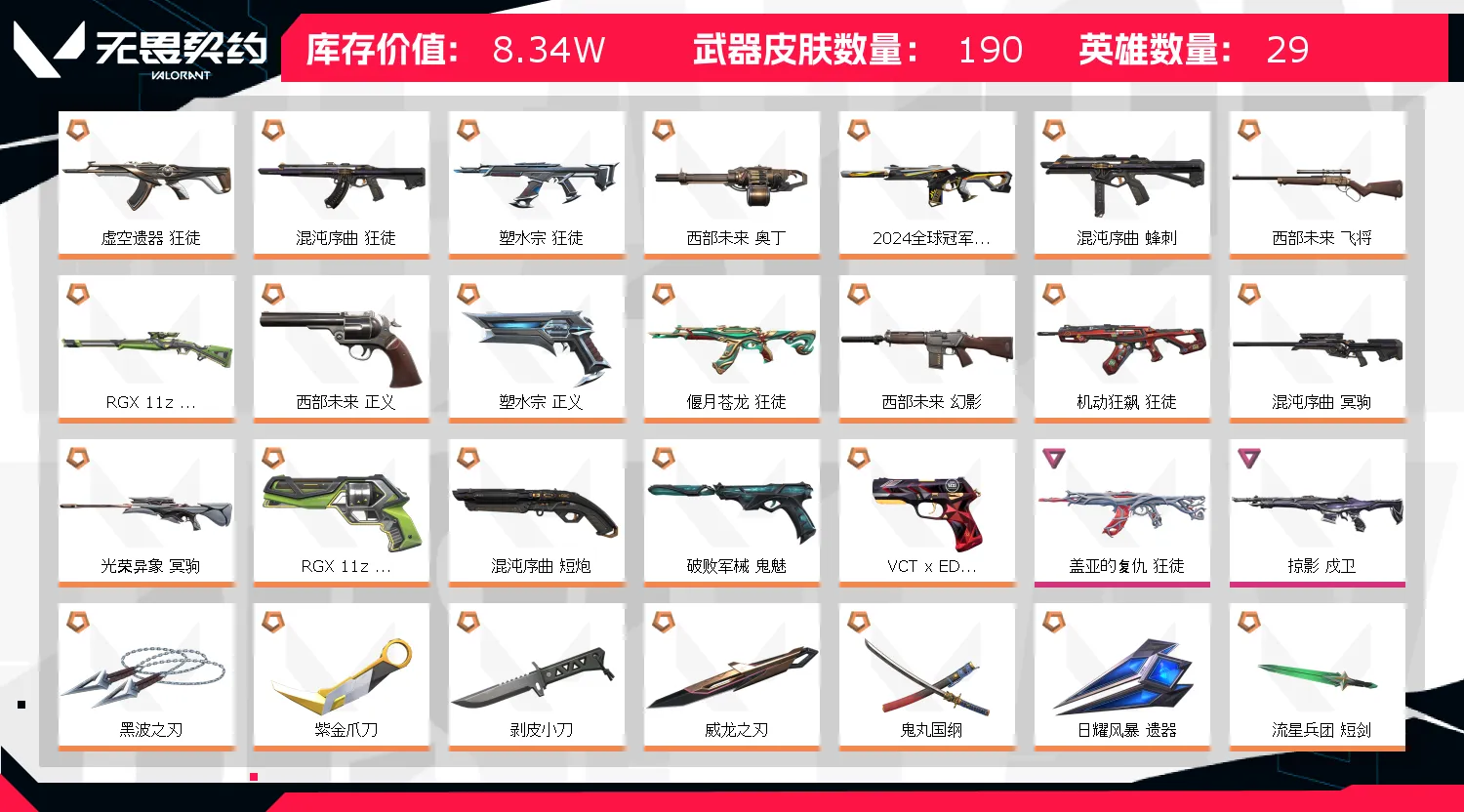 【当前段位:铂金II】8万库存5套装⚡极品刀皮23枪皮137黑波之刃剥皮小刀⚡混沌套RGX3.0套24冠军套⚡盖亚紫金狂徒