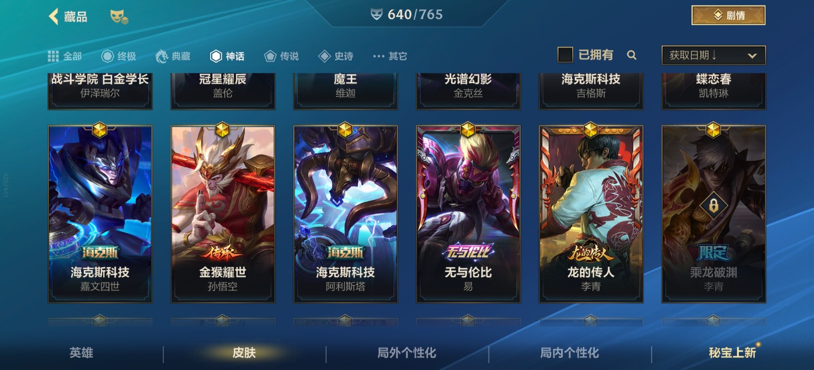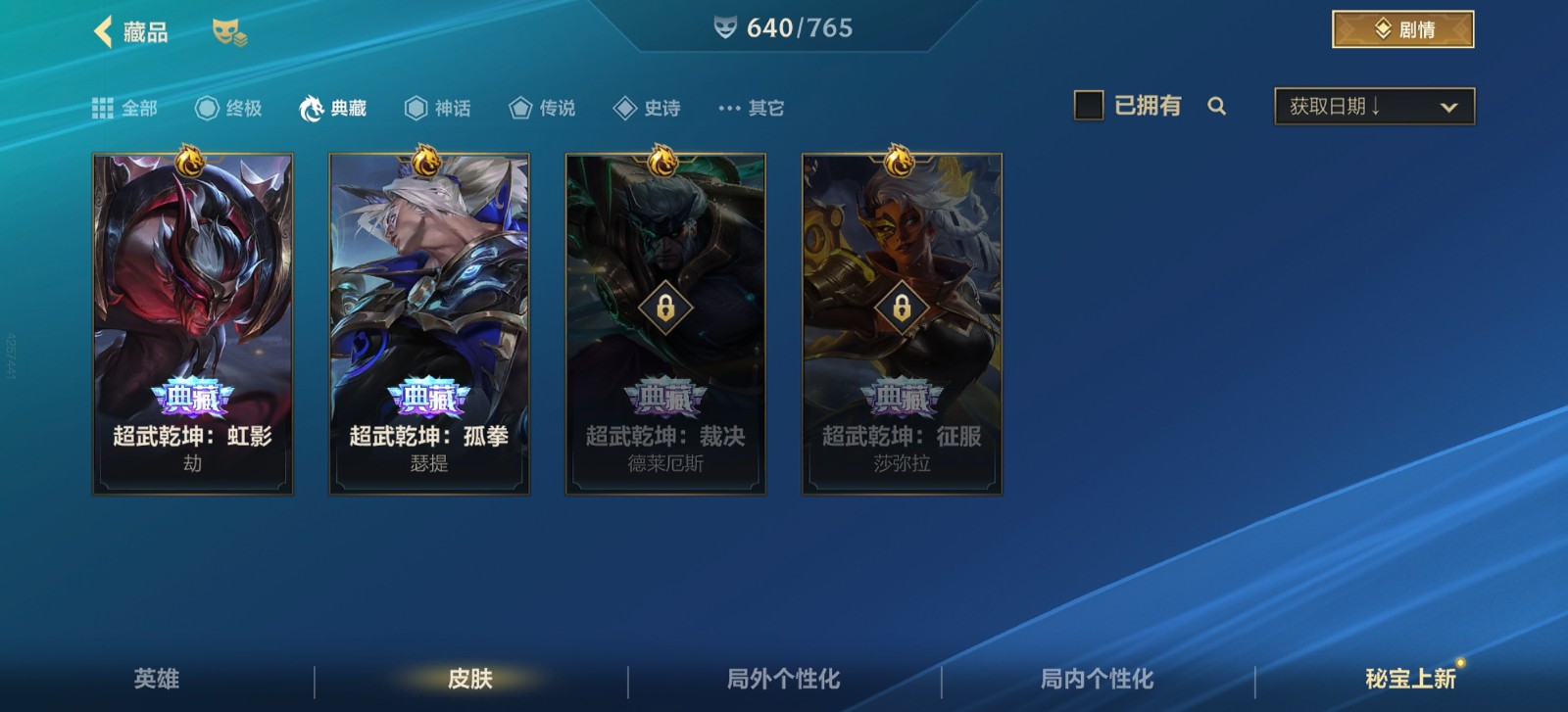 【安卓】 【允许排位】可排640皮2典藏超舞乾坤劫瑟提21神话78传说