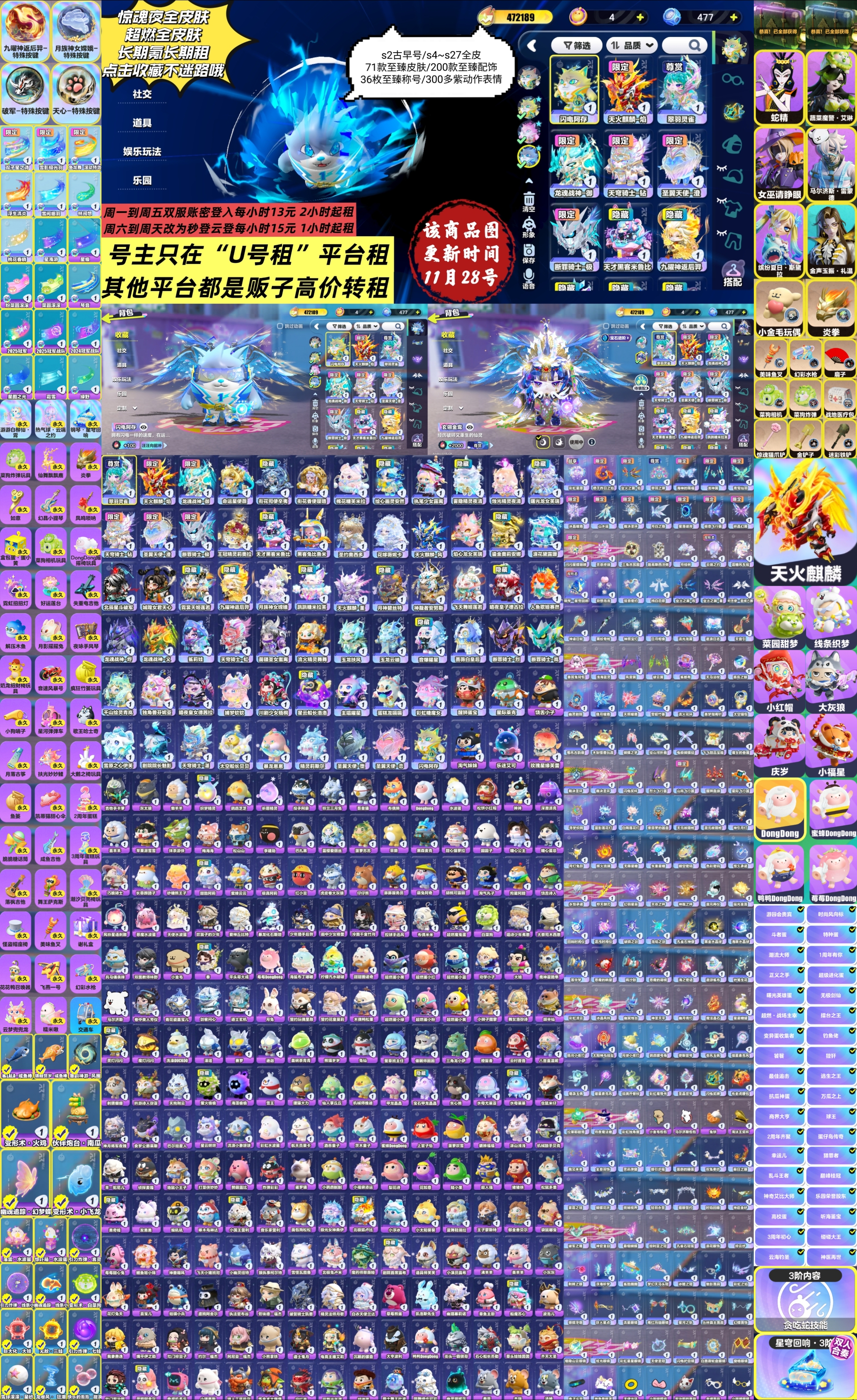 官服赛季全皮肤漂亮大衣柜,六百款皮肤数量,260款紫皮,71款至臻皮,150款至臻配饰,50万氪条,呦呦年费vip 乐园vip 长期氪长期租不跑路