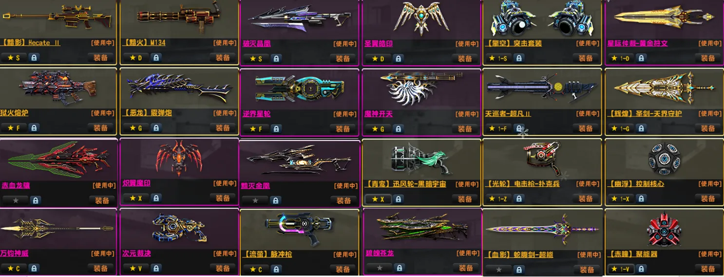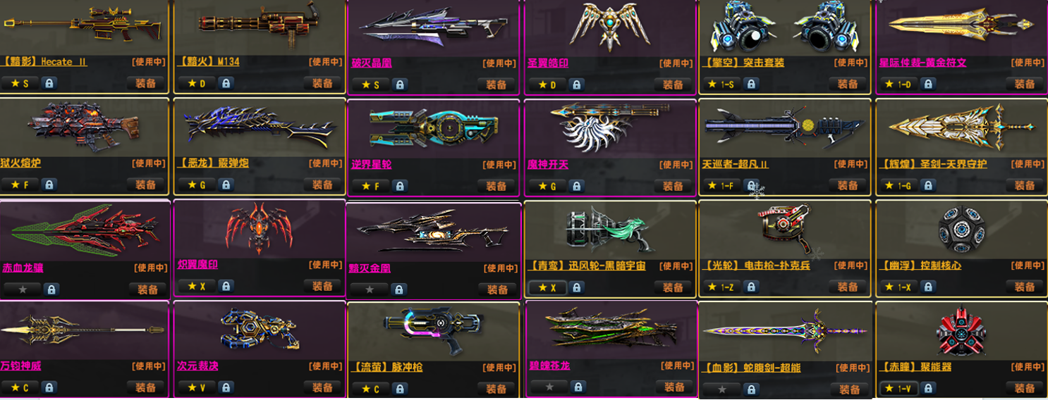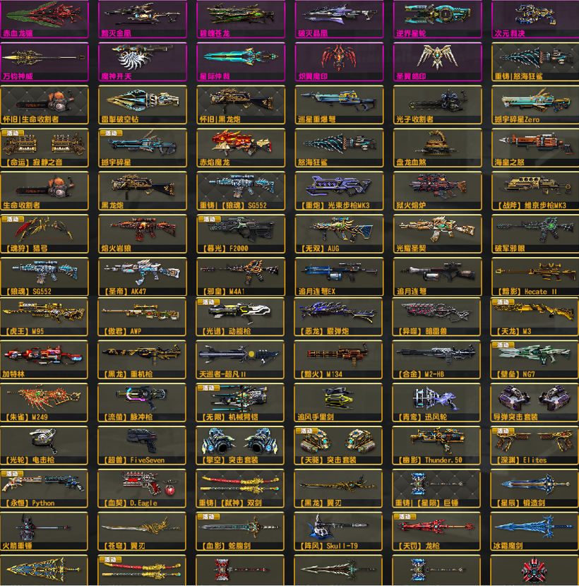 马神赤血龙骧四件套●双黯4特典狙机枪黯火黯影●双兔龙神威次元双雷●光束维京套闪电野牛重铸怀旧去雾