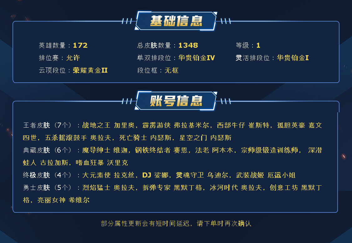 ~~喜欢记得收藏~~可排位~~1335皮全英雄丨936原皮399炫彩~~租之前尽量查一下游戏ID,确保段位是您需要的,避免浪费您的时间~~请勿挂机逃跑故意送人头,谢谢合作,谢谢~~