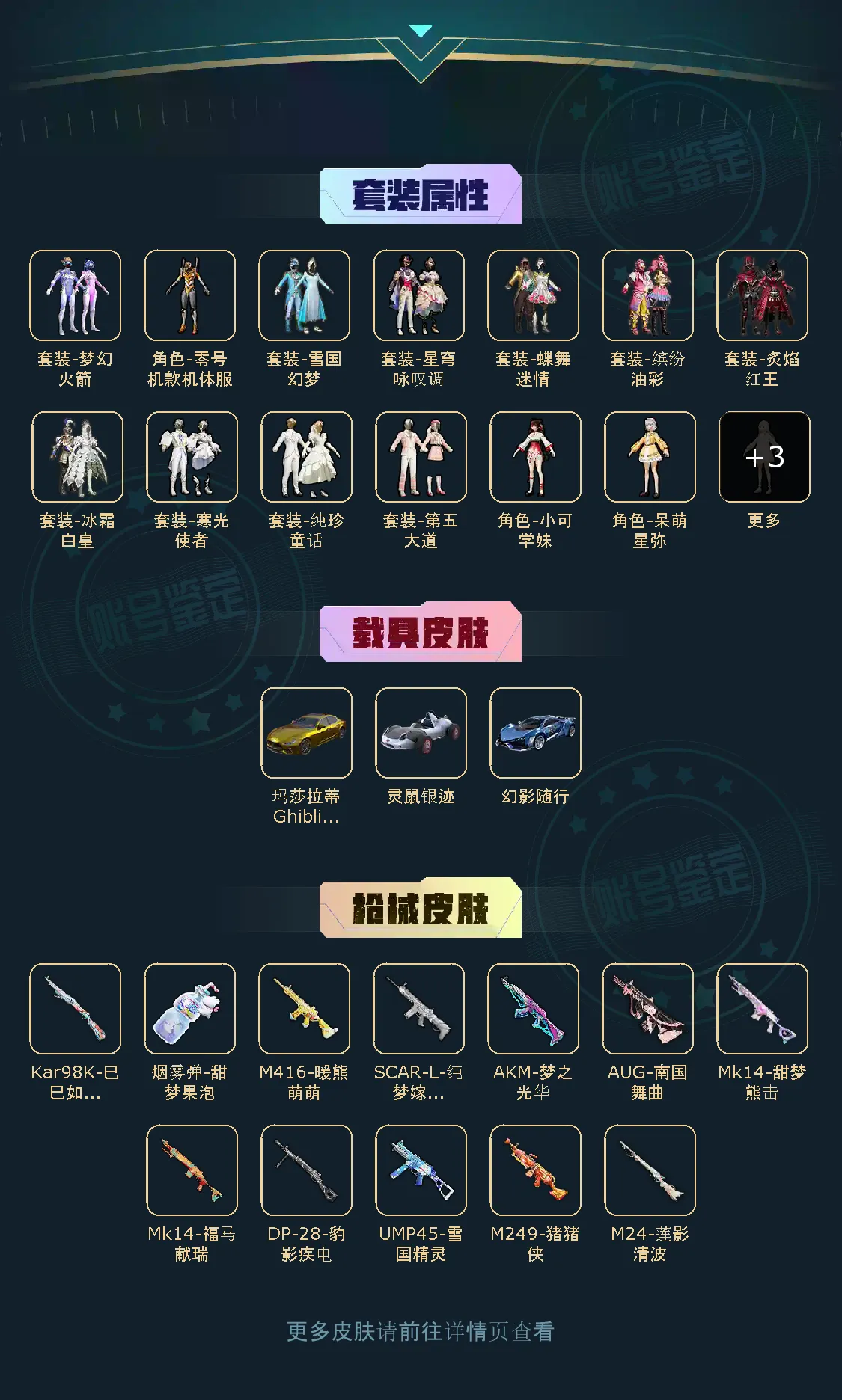 【粉色枪皮】AKM-梦之光华/SCAR-L-纯梦嫁纱/M416-暖熊萌萌/AUG-南国舞曲/Kar98K-巳巳如意/M24-莲影清波/Mk14-甜梦熊击/UMP45-雪国精灵/M249-猪猪侠/烟雾弹-甜梦果泡