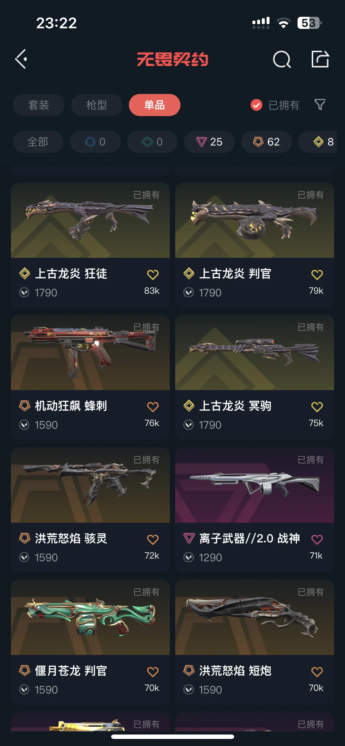 15w库存|离火刃vct爪|2324冠军|千灵绽华套|离子2.0套|上古龙炎套|般若2.0|洪荒套